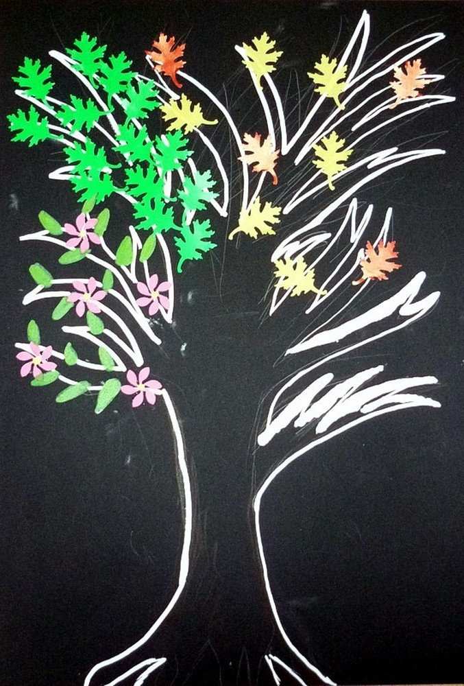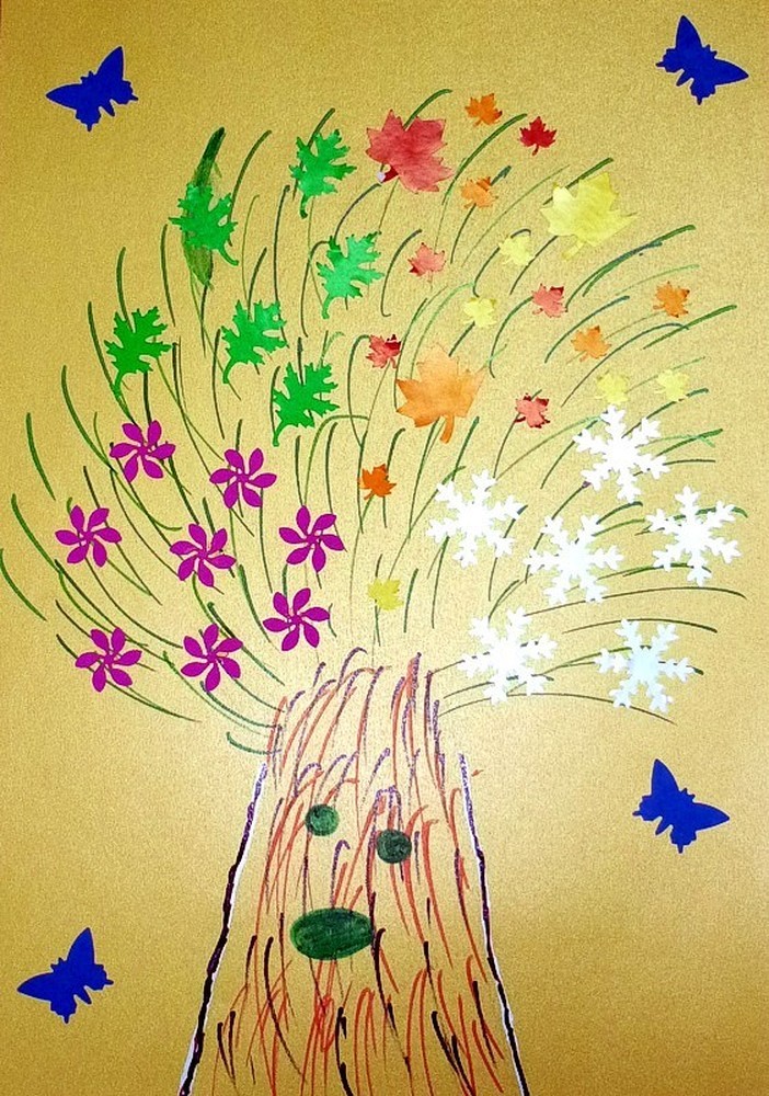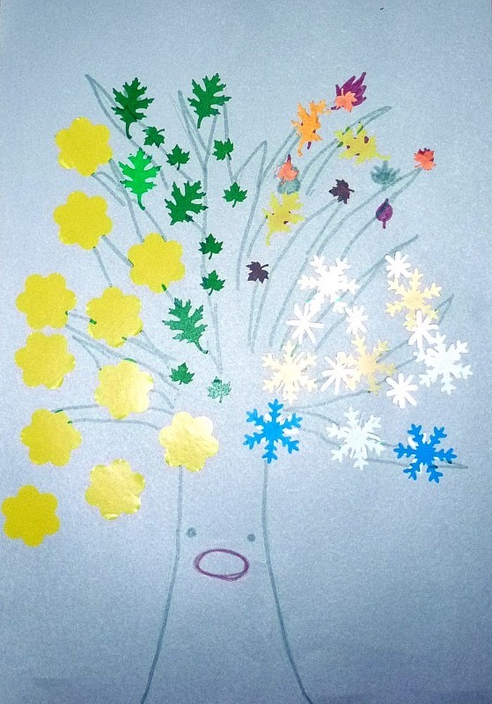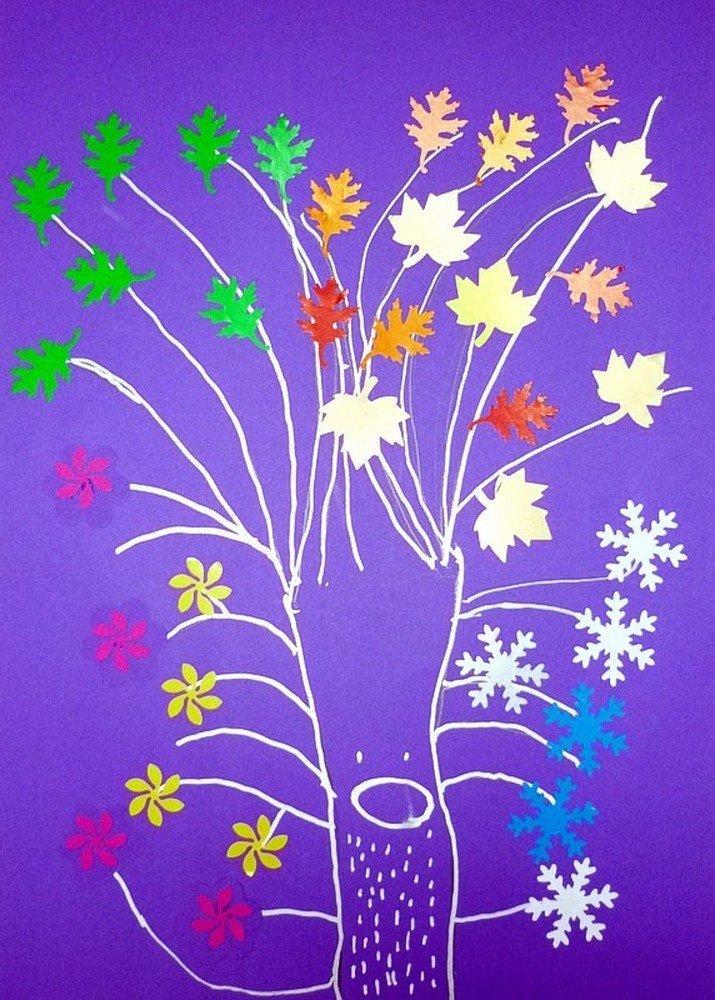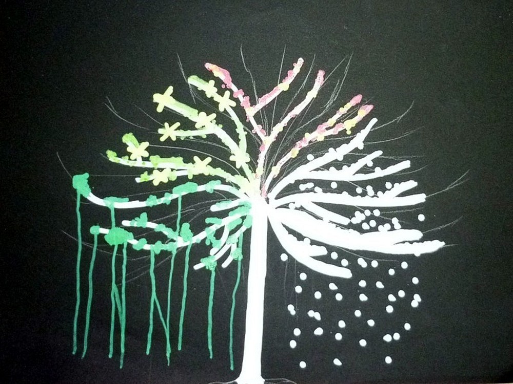 Dzień zakończyliśmy zajęciami plastycznymi, podczas których powstały cztery odsłony magicznego drzewa.