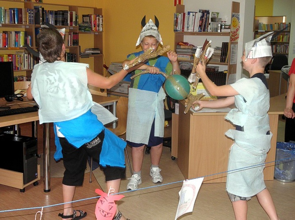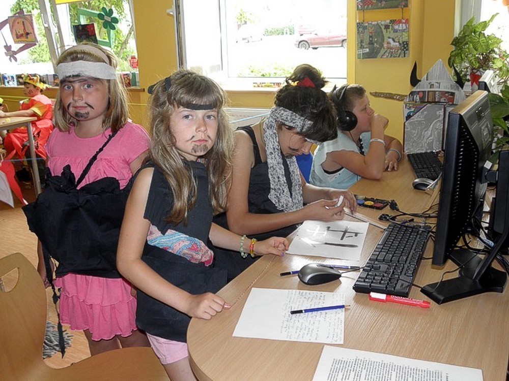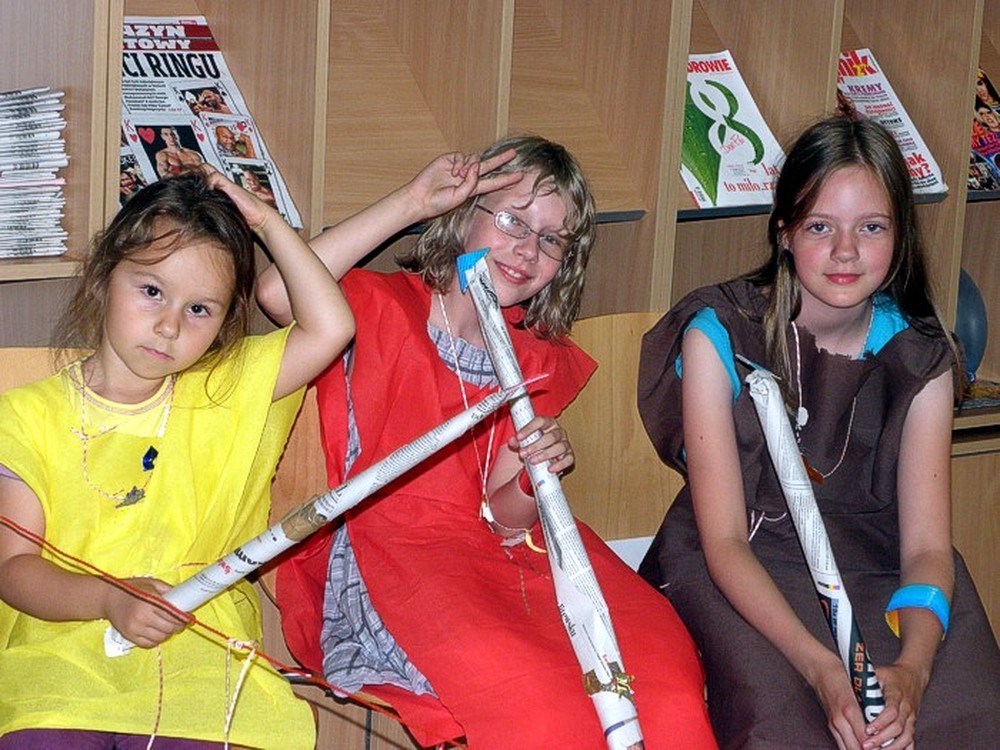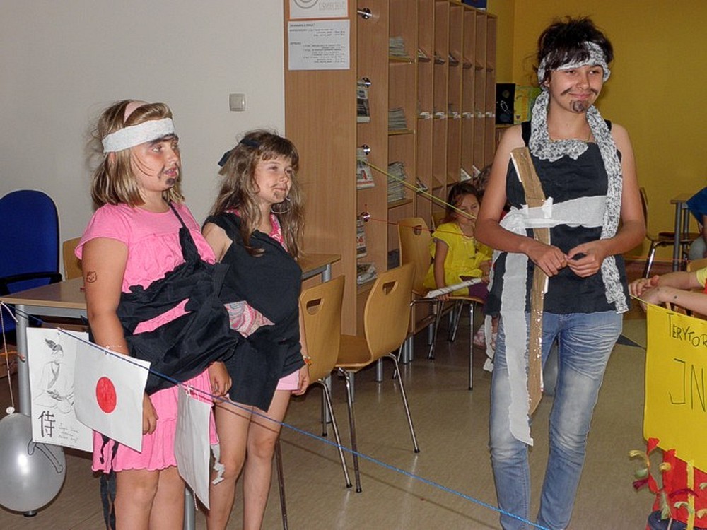 W piątek - 8 lipca - terytorium czytelni zajęli Wikingowie, Indianie, Masajowie i Samuraje. Mogłoby się wydawać, że w tygielku kulturowym będzie iskrzyć. Nic bardziej mylnego - w pokojowej atmosferze mogliśmy podziwiać barwne stroje i wysłuchać różnych historii i ciekawostek.