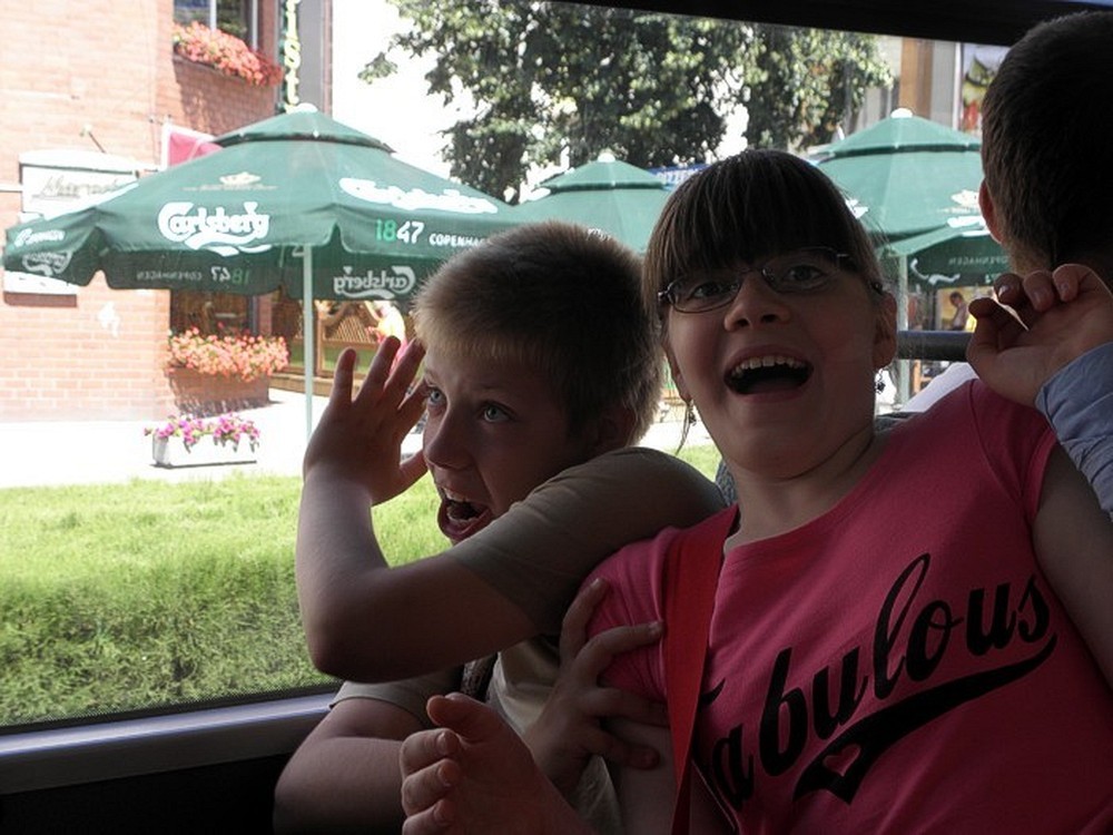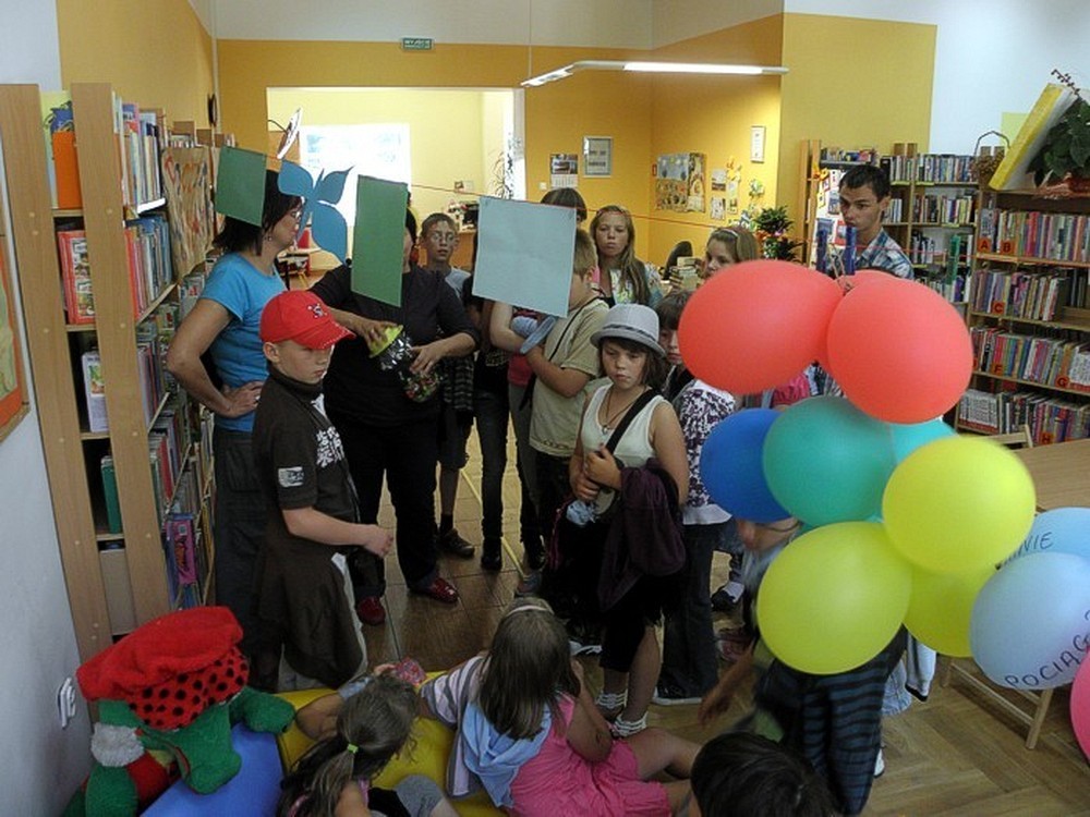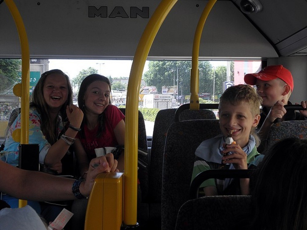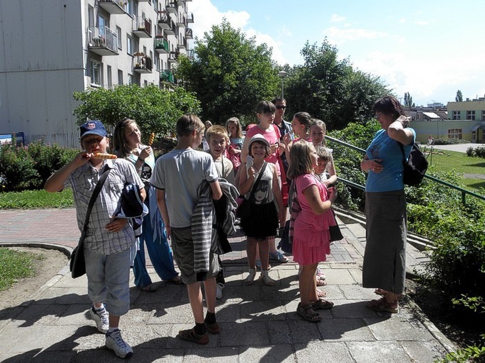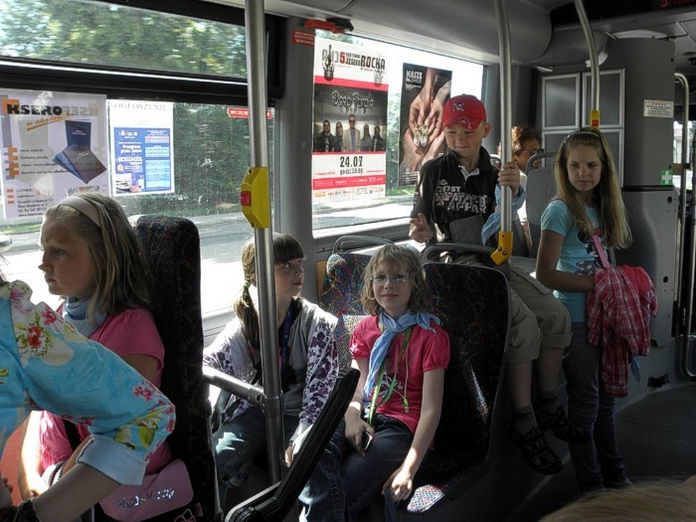 Między poszczególnymi bibliotekami poruszaliśmy się pieszo i autobusami. Oprócz bibliotek ciekawiło i bawiło nas wiele rzeczy, jak np. biedronka na suficie autobusu, ciekawa architektura nowych budowli, mini-karuzela przed Filią nr 4 czy sklep z upragnionymi lodami. Nawet przypadkowe spotkanie z mamą miało inny, wakacyjny wymiar.
