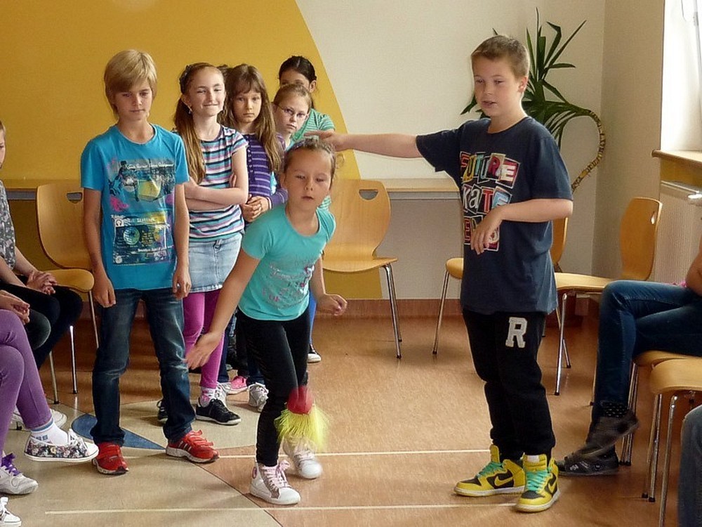 Regulamin, regulamin...!!! Brzmi poważnie... i taki też jest - regulamin ABC WAKACJOWICZA, zasady uczestnictwa w zajęciach... Uporałyśmy się z "nim" w 5 minut, a potem... Potem było już tylko wesoło! Przygoda z Łysą Kaczką i innymi stworami w "Opowieściach z Krainy Potworów" M. Pałasza i szalona PODRÓŻ DO HOLLYWOOD, pełna zabaw integracyjnych, wypełniła pierwszy wakacyjny dzień.