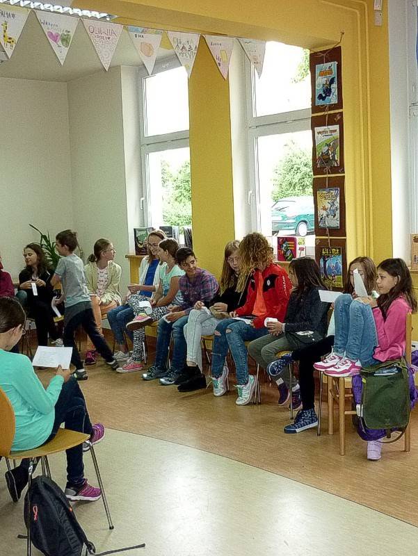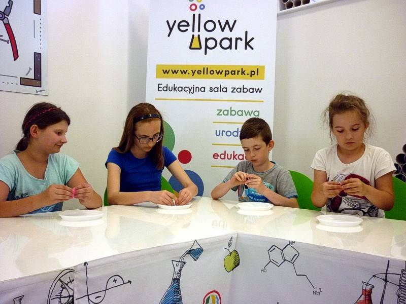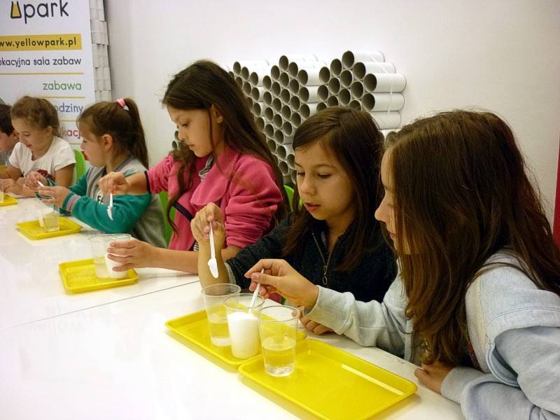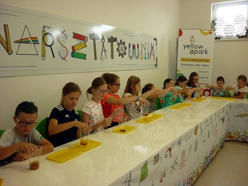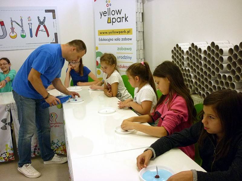 Kolejny dzień rozpoczęliśmy bardzo trudnymi WPRAWKAMI JĘZYKOWYMI, aby potem świetnie się bawić przy głośnym czytaniu wierszy o MUCHACH (książka Kingi Grabowskiej-Bednarz). W doskonałych humorach wyruszyliśmy do YELLOW PARKU na zajęcia doświadczalne ph. WESOŁA CHEMIA.