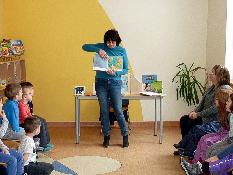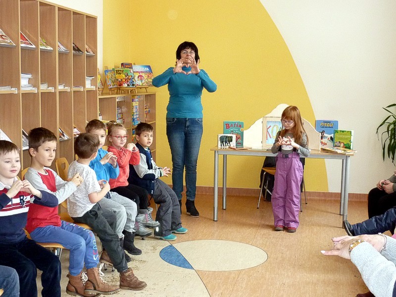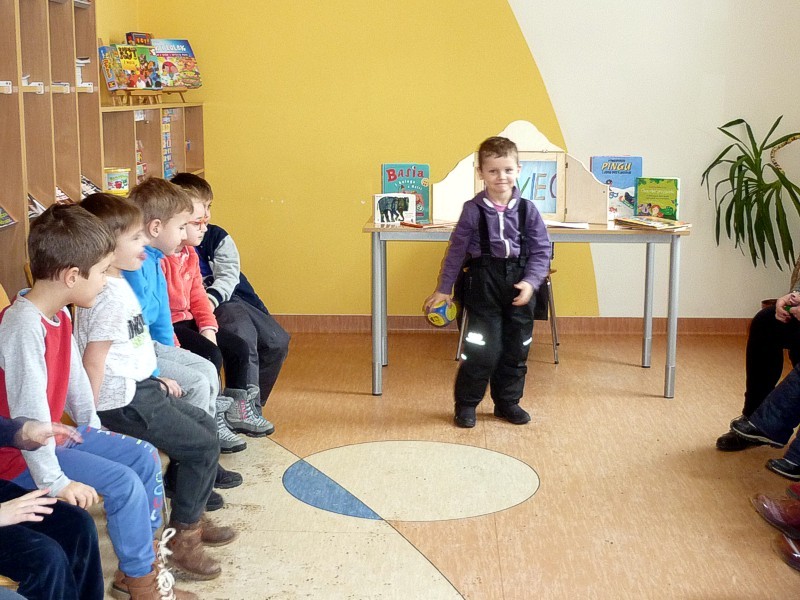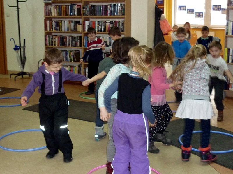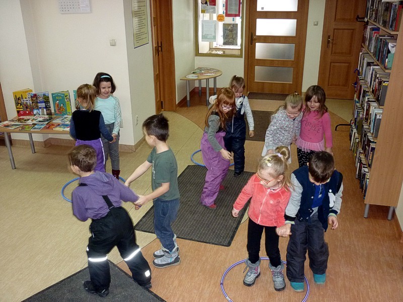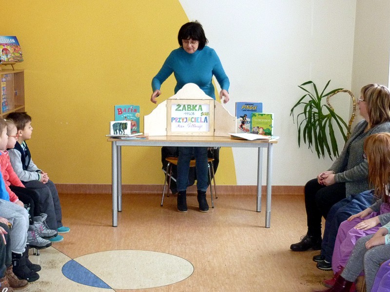 W piątek 2 marca do biblioteki przybyły wesołe ŻABKI z Przedszkola nr 15 w Koszalinie. Grupa pięciolatków uczestniczyła w spotkaniu edukacyjnym ph. WARTO MIEĆ PRZYJACIELA. Powitaliśmy się specjalną gimnastyką na rozmrożenie, po czym nastąpiła prezentacja książki M. Velthuijs'a - ŻABKA MA PRZYJACIELA - w naszym japońskim teatrzyku.