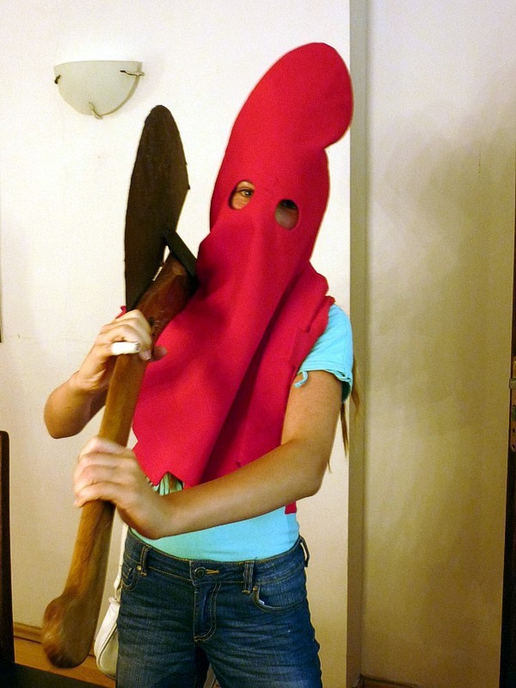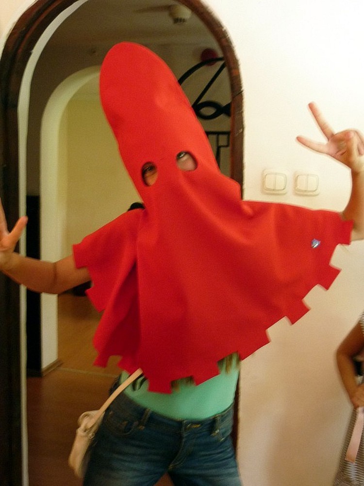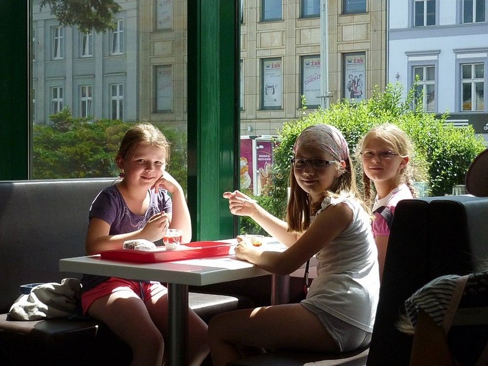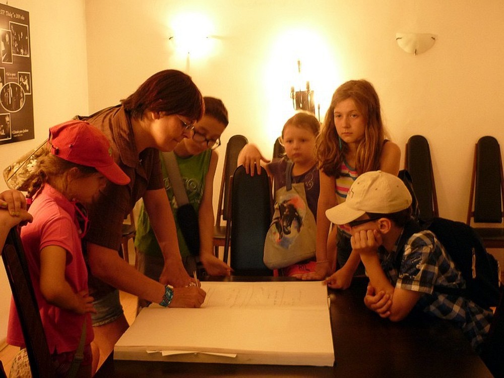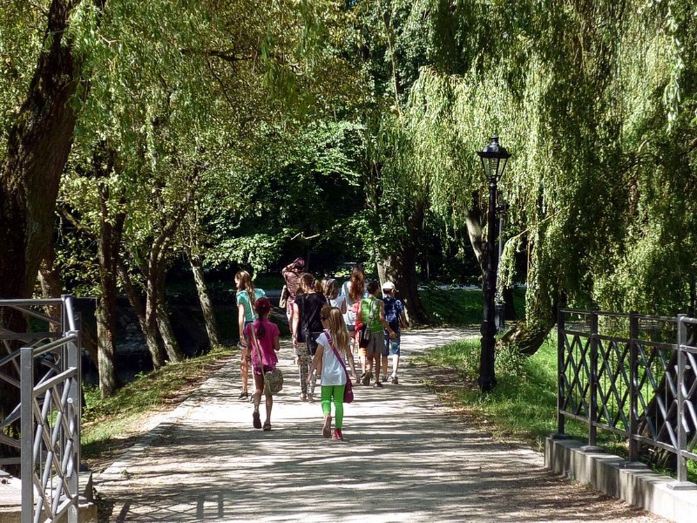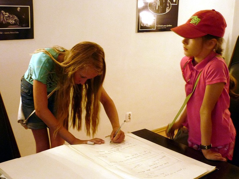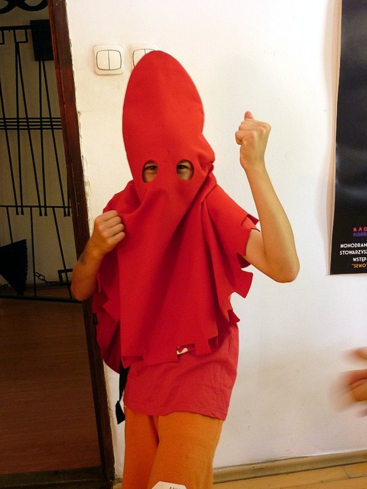 Po wizycie w muzeum, parkiem - wzdłuż średniowiecznych murów obronnych, udaliśmy się do zabytkowego Domku Kata. Tam na scenie teatru "Dialog" urządzliśmy sobie próbę "Kwoki" J. Brzechwy, a na górze - sesję fotograficzną w stroju kata. W drodze powrotnej, zmęczeni marszem i upałem, wstąpiliśmy do McDonald'sa. Uff! Wreszcie lody dla ochłody.