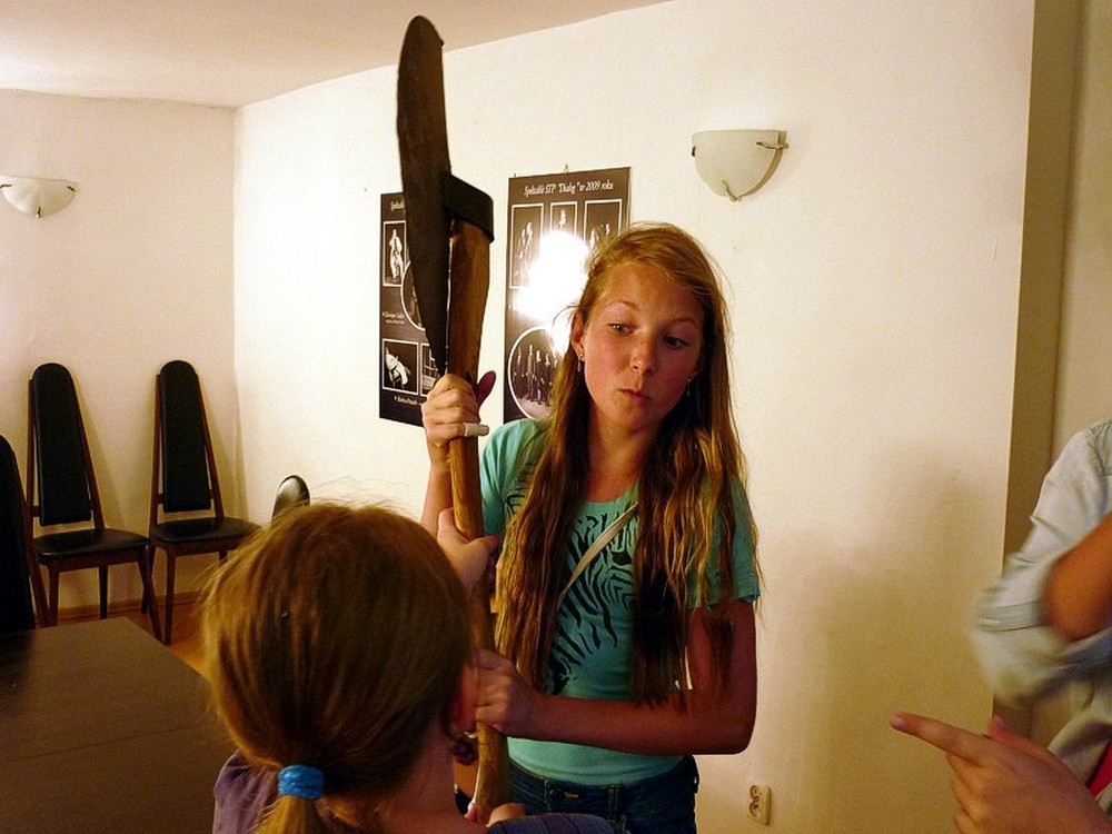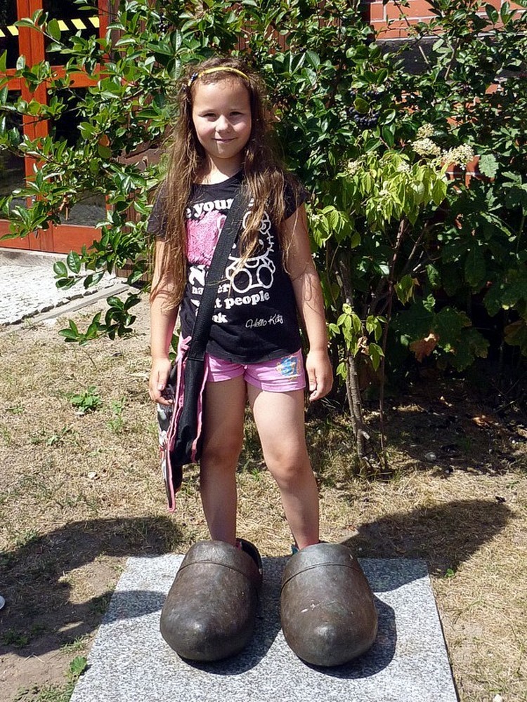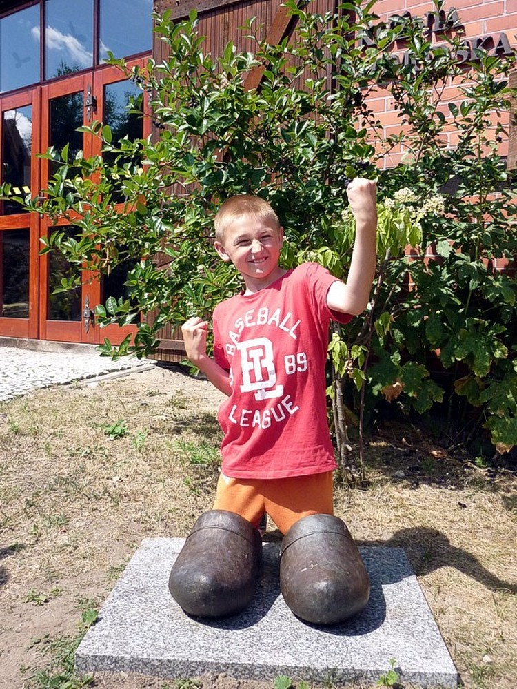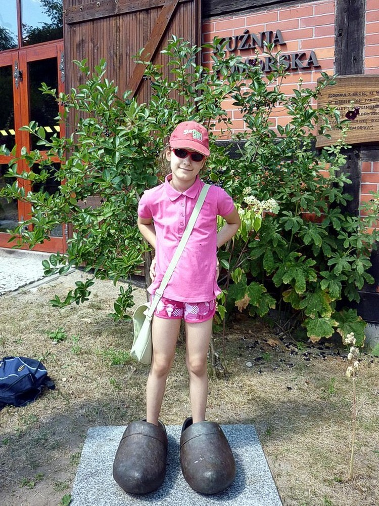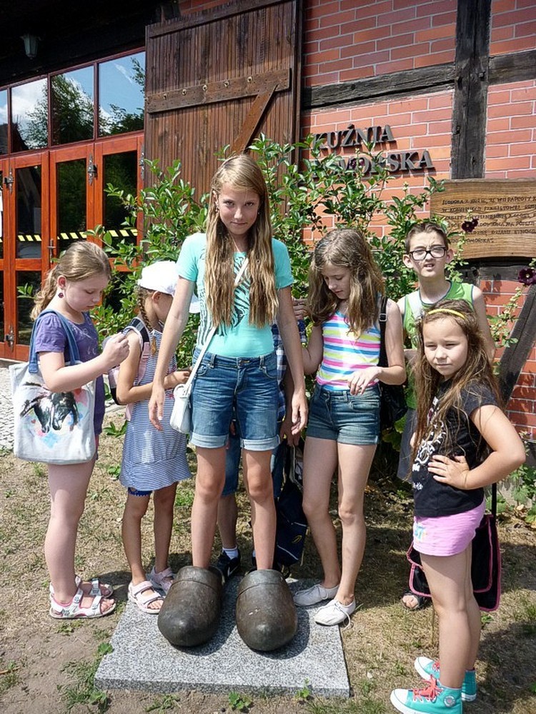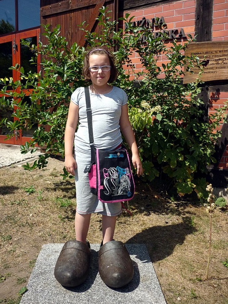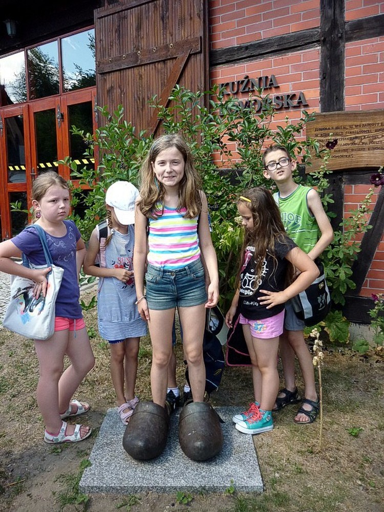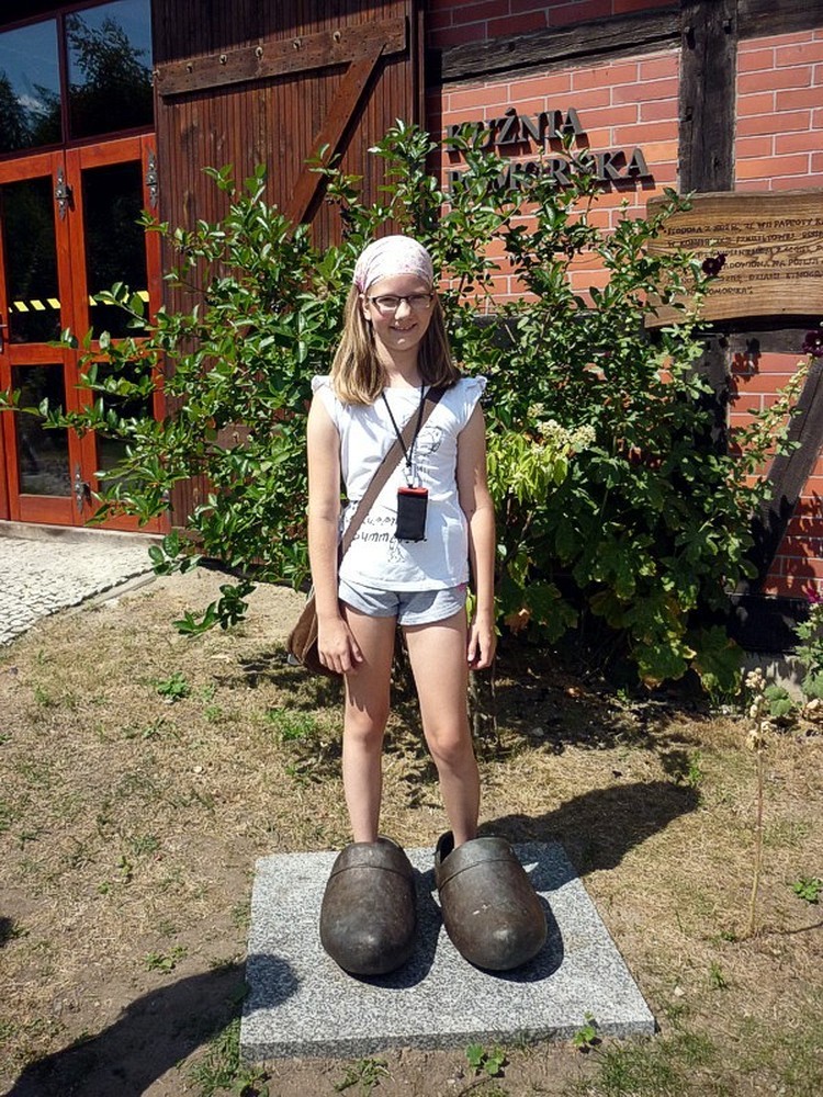 We wtorek 22 lipca, całą naszą zgrają, wybraliśmy się na wycieczkę po Koszalinie. Gwoździem programu była wizyta w Muzeum Okręgowym i skansenie. Zwiedziliśmy ładnie wyposażone komnaty w dawnym pałacu młynarza. Następnie obejrzeliśmy kilka wystaw, kużnię i chatę rybacką. Jednak naszym numerem jeden, na terenie skansenu, okazały się "szykowne pantofelki" jamneńskie. Każdy musiał je przymierzyć!