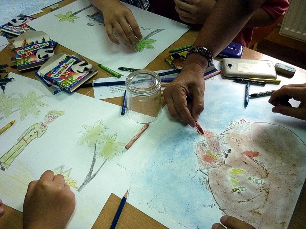 Dwie grupy wakacjowiczów "ciężko" pracowały na dzisiejszych (10 lipca) zajęciach, aby mogły powstać ilustracje do zaproponowanych przez nas tekstów. Efekt przerósł nasze oczekiwania... prace były piękne! Pozostało nam tylko z nieukrywaną przyjemnością czekać na przedstawienia..., którymi z pewnością pochwalimy się szerszej publiczności!