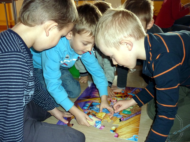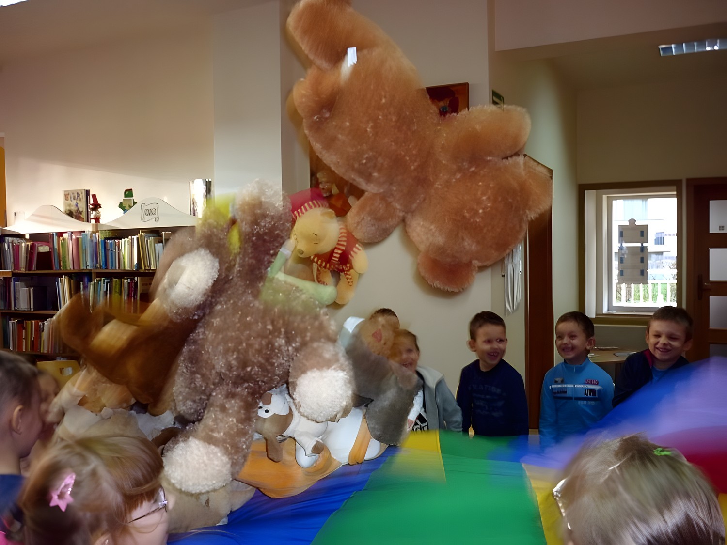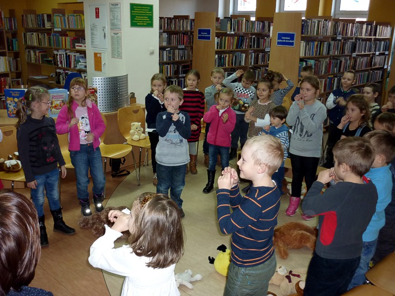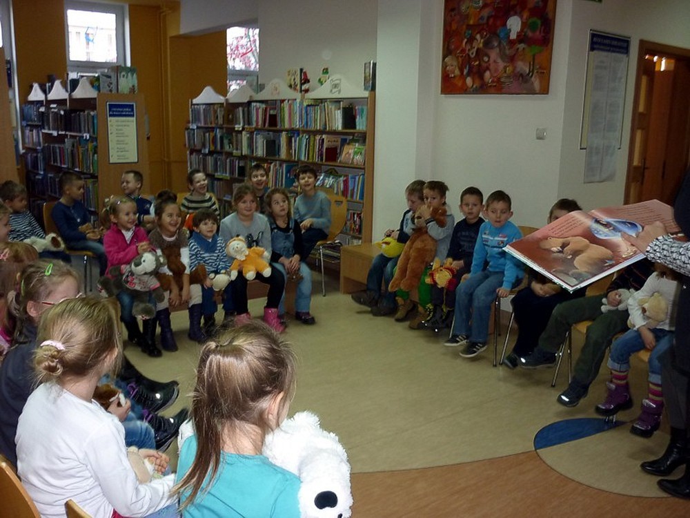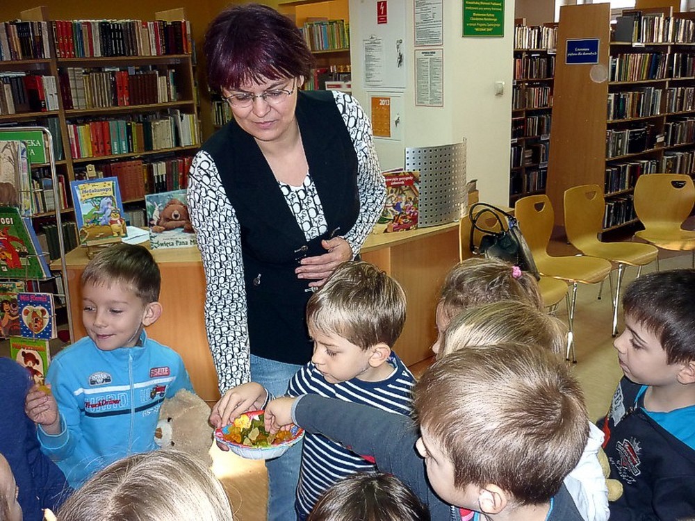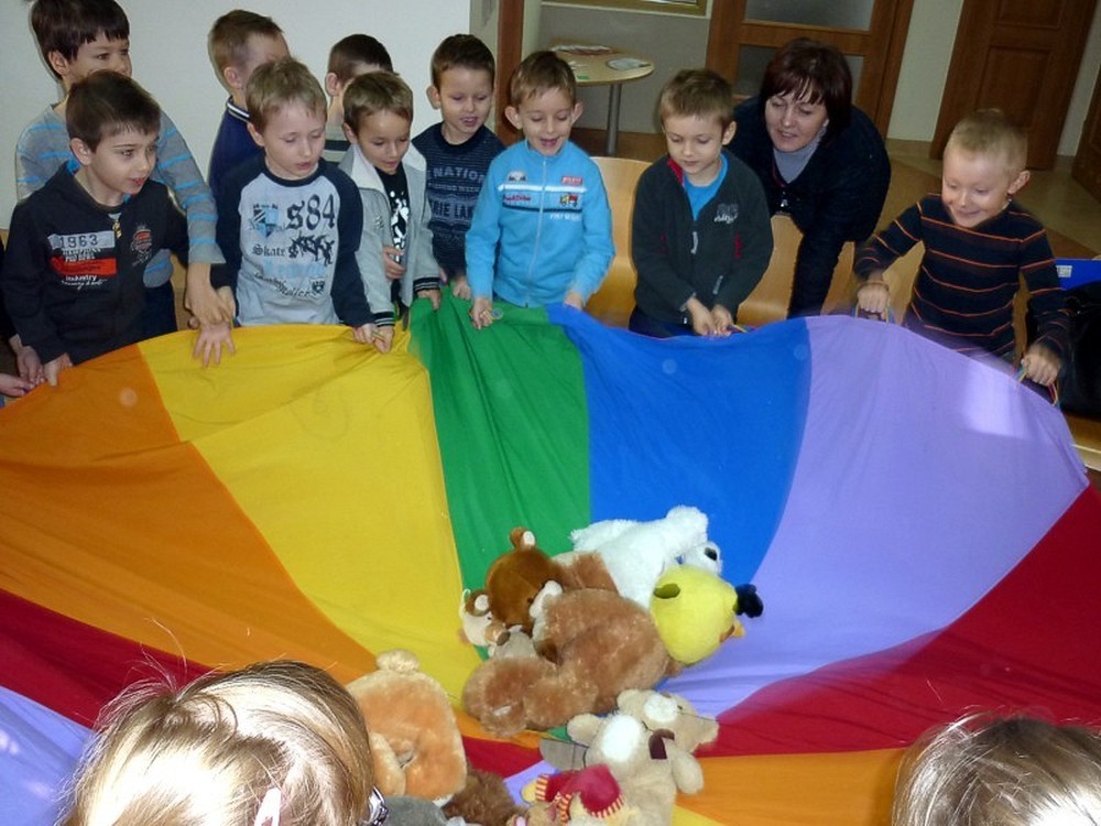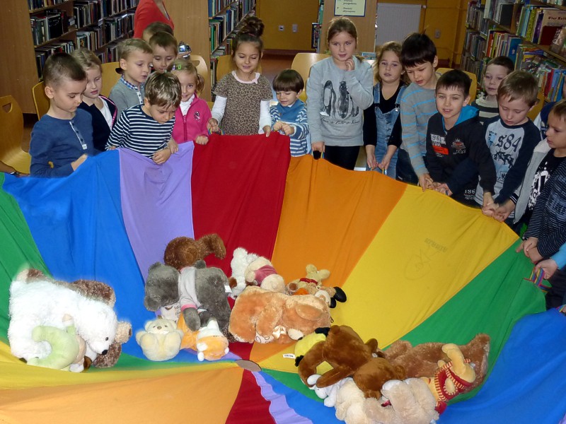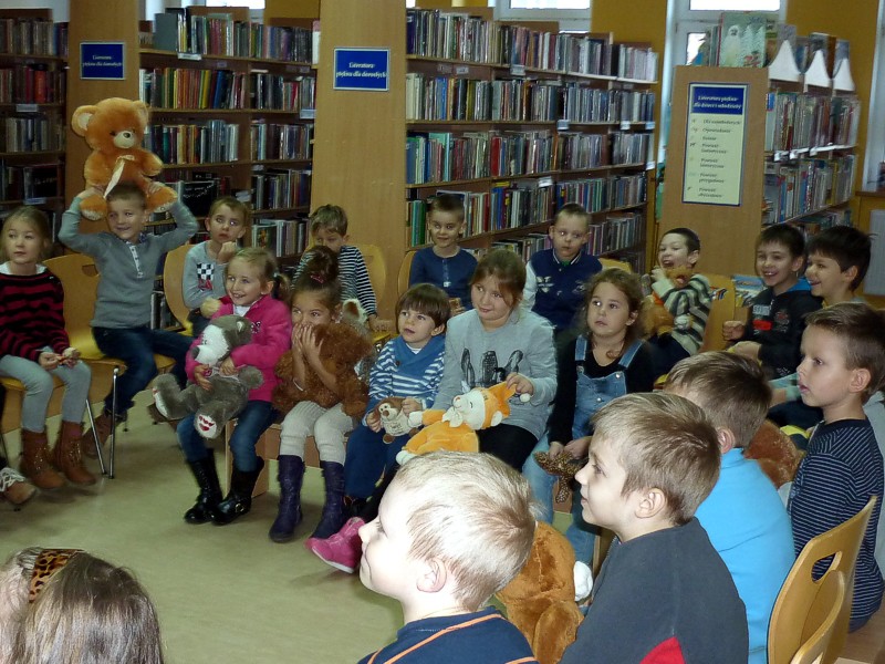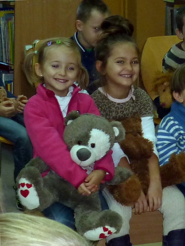W dniu 25 listopada, wspólnie z sześciolatkami z Przedszkola nr 15 w Koszalinie, świętowaliśmy ŚWIATOWY DZIEŃ PLUSZOWEGO MISIA. W związku z tym oglądaliśmy i czytaliśmy bajeczki z misiowej półeczki, śpiewaliśmy misiowe piosenki, układaliśmy puzzle, oraz zgadywaliśmy "jaki to miś?" Ulubione przytulanki wszystkich dzieci były przez nas kołysane na chuście, a później energicznie budzone. Jak przystało na ten szczególny dzień, pożegnaliśmy się gumisiowym skokiem i żelkowym poczęstunkiem.