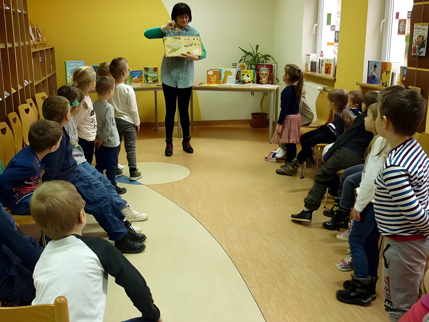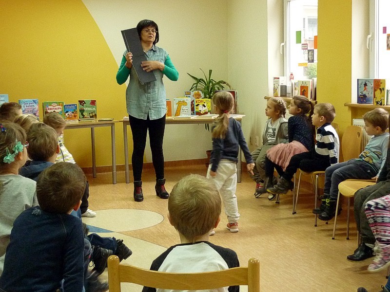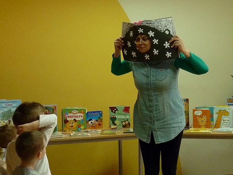 Przedszkolaki brały udział w spotkaniu pod hasłem ZACZAROWANE STRONY. Było to wprowadzenie w świat przygód, zagadek, ruchomych ilustracji i zabaw, inspirowanych książkami interaktywnymi. Bystre pięciolatki dobrze się u nas czuły, a każde zadanie wykonały śpiewająco. Już jesteśmy umówieni na następne... dwa spotkania!