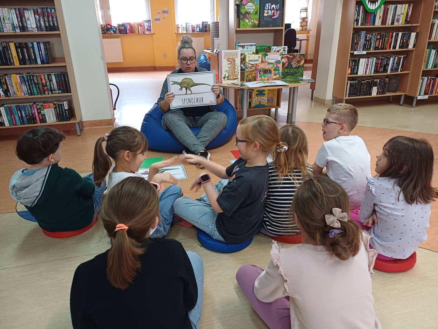 Wrrrrr...!!!! Czasem w bibliotece rządzą DINOZAURY.Grupa dzieci ze świetlicy w Szkole Podstawowej nr 18 im. Jana Matejki w Koszalinie podzieliła się z Gosią swoją wiedzą na temat tych pradawnych stworzeń. Padło wiele teorii i jeszcze więcej pytań.Wymieniliśmy się spostrzeżeniami, nakarmiliśmy T-rexa i w doskonałych humorach wróciliśmy do swoich obowiązków.