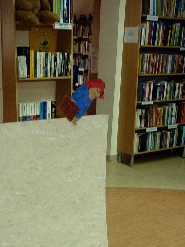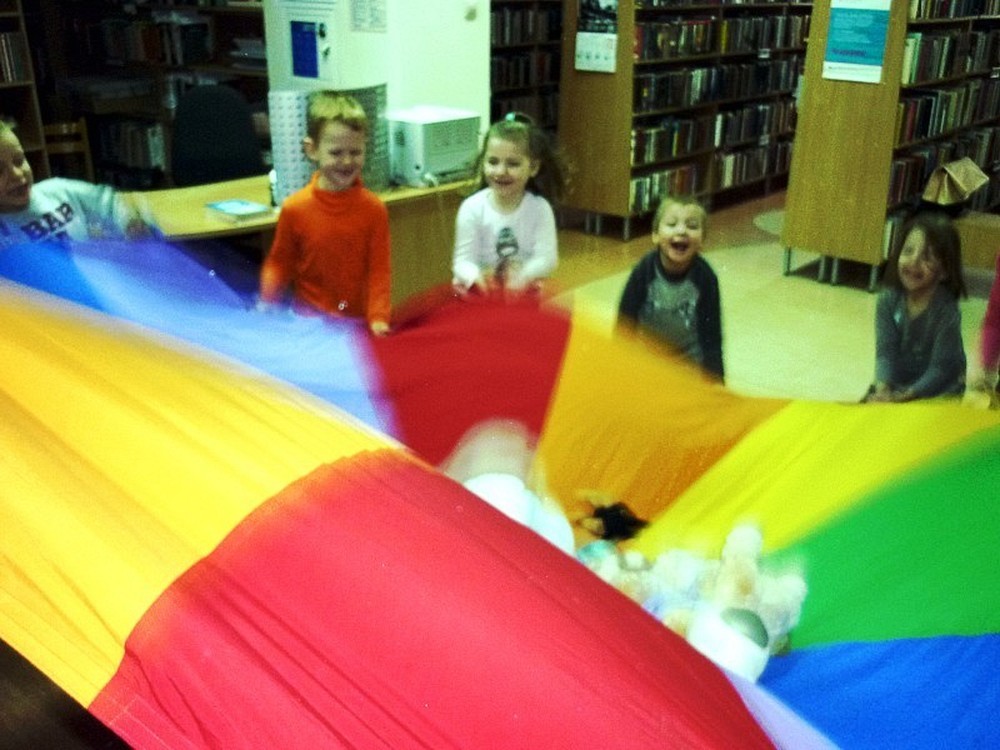 Misiowe przyjęcie obfitowało w mnóstwo atrakcji. Zaczęło się od prezentacji bibliotecznego Misia Znajdka, oraz zabawnego występu niedźwiadka Paddingtona. Dzieci wysłuchały też ciekawej historii powstania pluszowej zabawki i poznały sylwetki nasłynniejszych bajkowych miśków. Wkrótce nasze przyjęcie przybrało swobodny charakter. Misie fisiowały na chuście, skakały i szalały po sali.