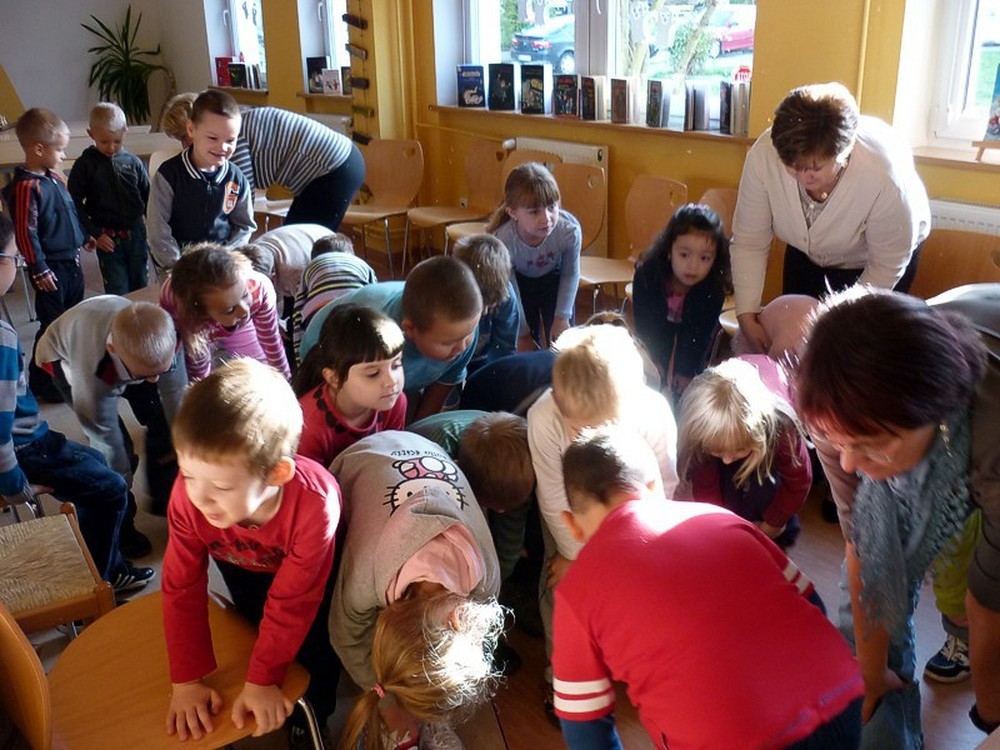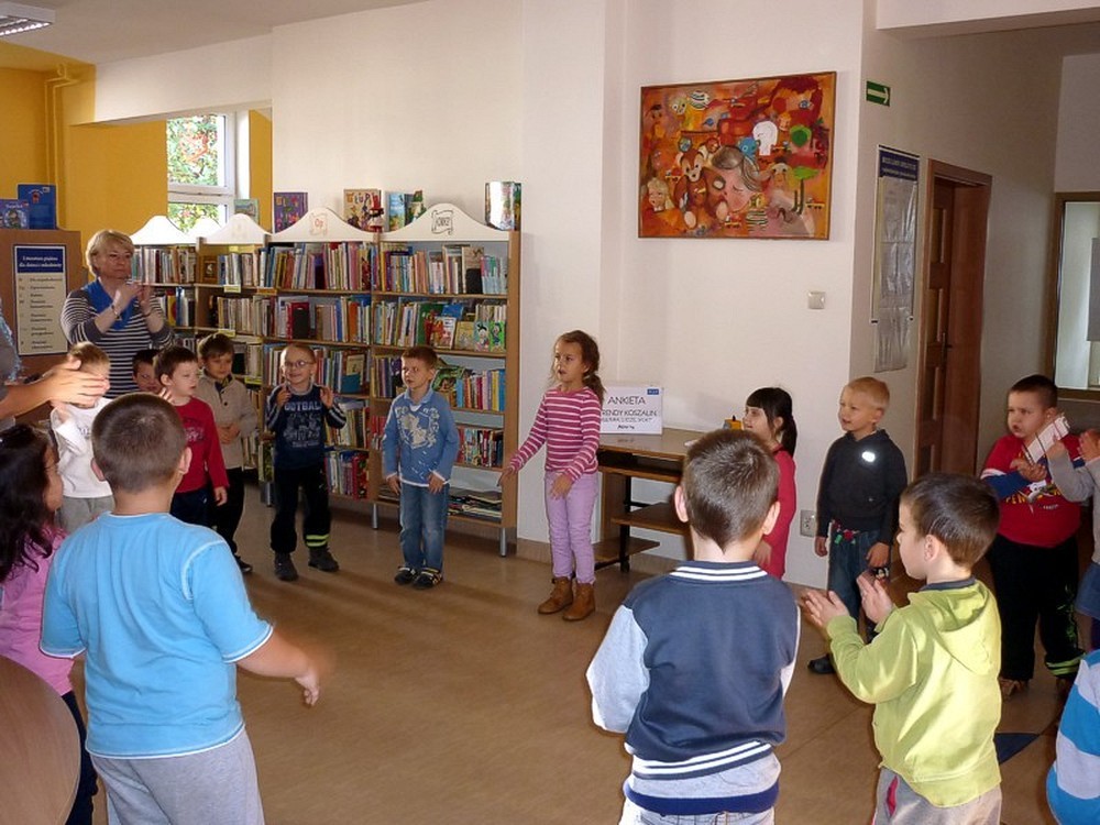 Na kolejną lekcję ph. WESOŁE RYMY (22 października) przybyły sześciolatki z Integracyjnej Szkoły Podstawowej nr 21 w Koszalinie. Dzieciom najbardziej podobały się wierszyki-wyliczanki, kabaret "Królewna Śnieżka i siedmiu krasnoludków" (wg W. Chotomskiej) oraz zabawa "Magiczne pudełka" z wyskakującymi z nich bohaterami wierszy.