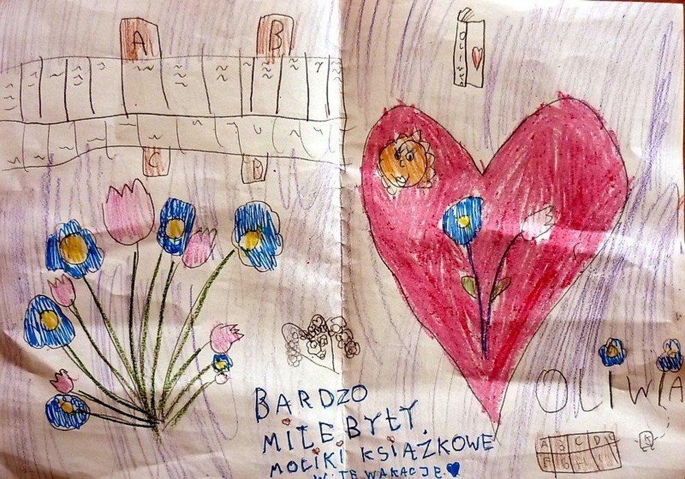 Wśród uczestników spotkania była molinka Oliwia, bywalczyni wakacyjnych zajęć w bibliotece, od której Pani Wiola otrzymała osobiste podziękowanie.