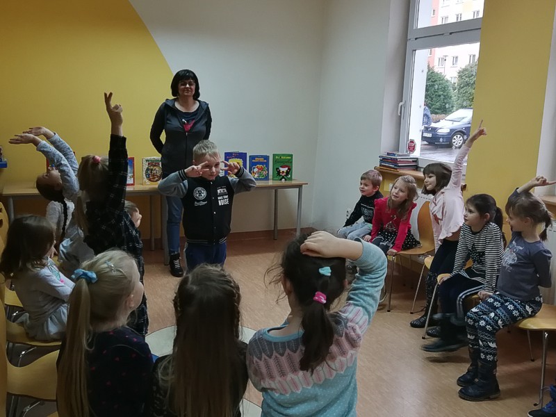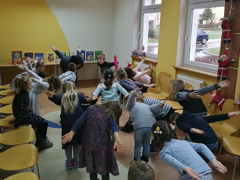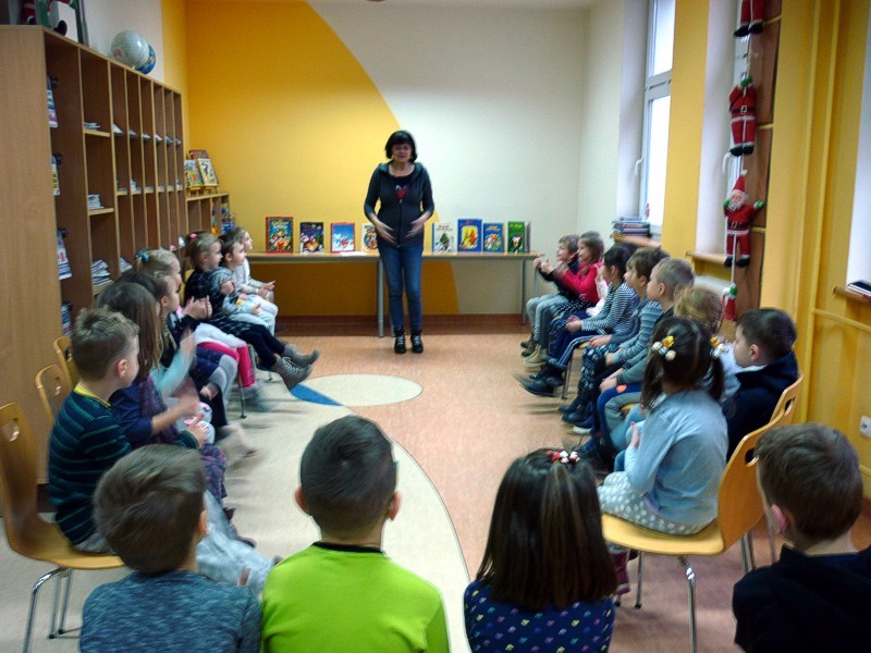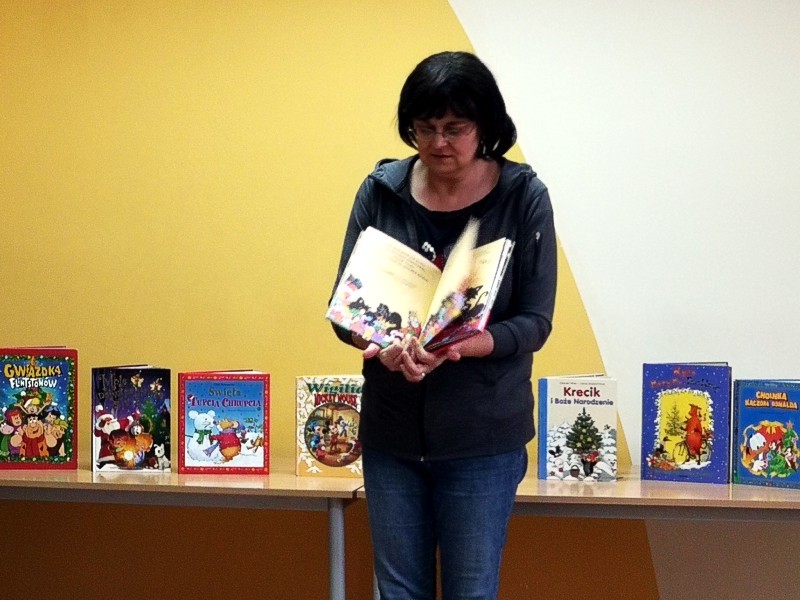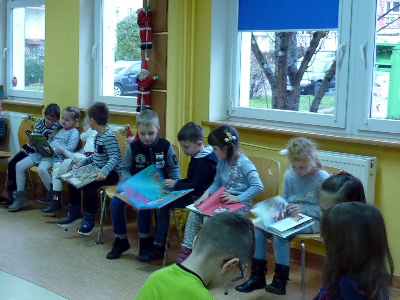 Dzieci poznały zabawną opowieść J. Wieslandera - WIGILIA MAMY MU I PANA WRONY, a następnie zostały poddane różnym okolicznościowym testom i sprawdzianom. W ramach relaksu - na koniec zajęć - zaproponowałyśmy grupie przegląd najpiękniejszych, świątecznych lekturek.