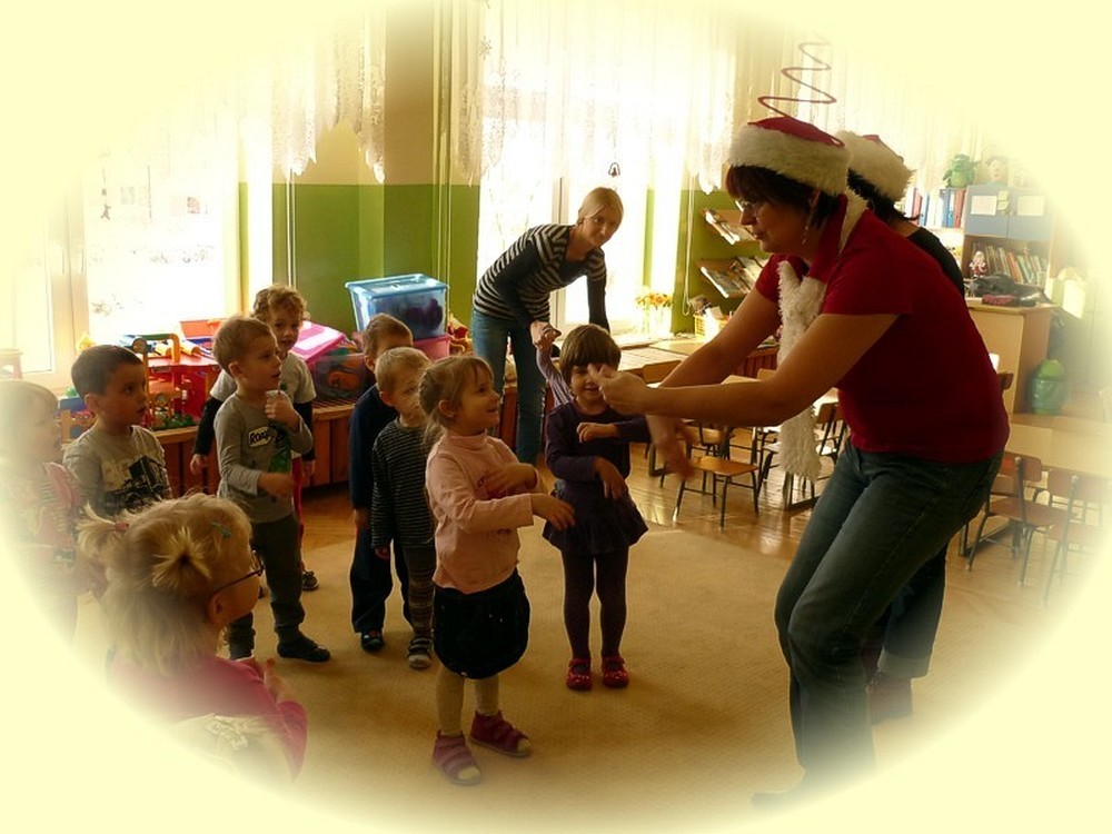 Dzieci oglądały z wielkim zaciekawieniem bogato ilustrowane mikołajkowe lekturki, a następnie odgadywały znajdujące się w nich świąteczne symbole. Ćwiczyły z nami, tak jak Mikołaj, który musi dbać o kondycję, a przede wszystkim miały wielką ochotę na więcej zabaw. Pożegnaliśmy się życząc sobie Wesołych Świąt i wymarzonych prezentów pod choinką.