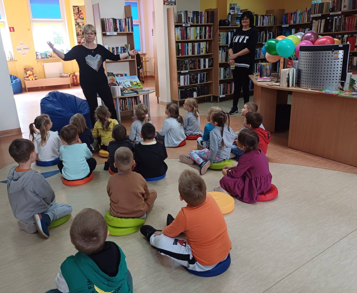 Dziś na spotkanie z ZAWODOWCAMI przyleciały "Pszczółki" z Przedszkola nr 35.Temat zajęć - wydawałoby się niezwykle poważny - ale nie z 4-latkami. Podczas zawodowych kalamburów pojawiły się zaskakujące profesje, jak np. SKRZYPIARKA oraz ŚPIEWARKA. Poza tym, jak to zwykle z przedszkolakami - małe rączki rwały się do książeczek, a nóżki do skakania. Zapewniamy, że niczego Pszczółkom nie brakowało, a zwłaszcza dobrej zabawy.