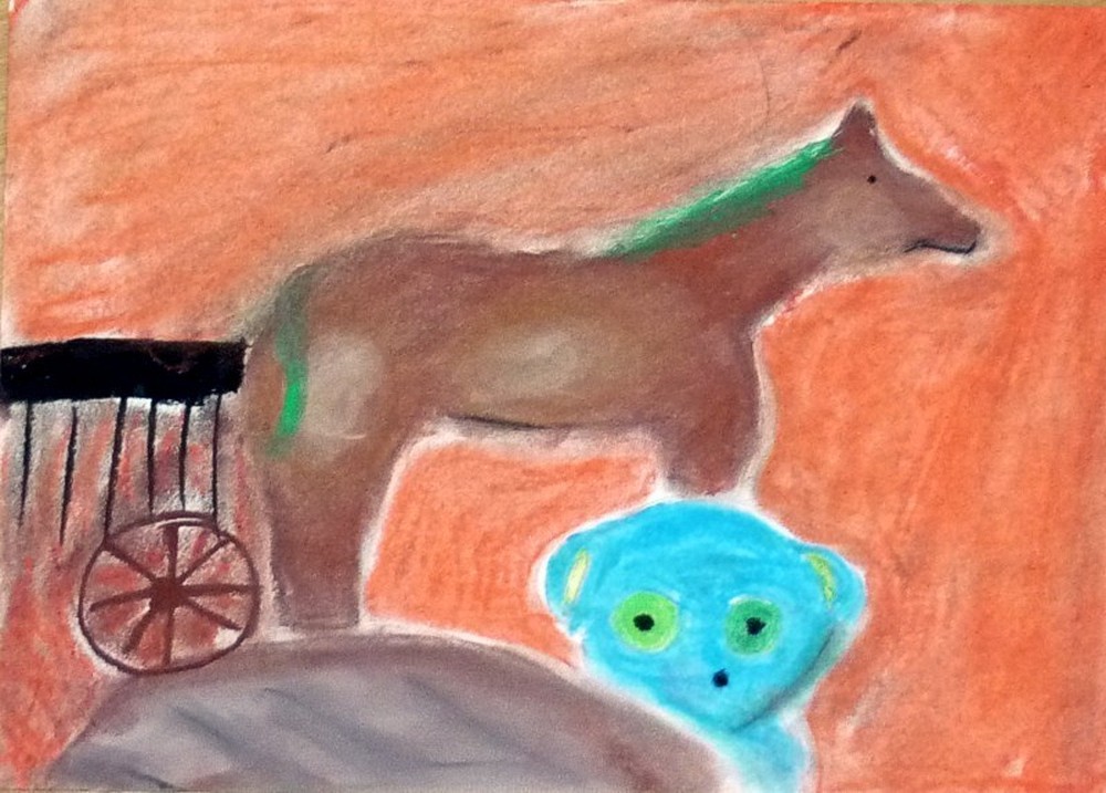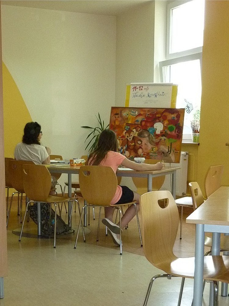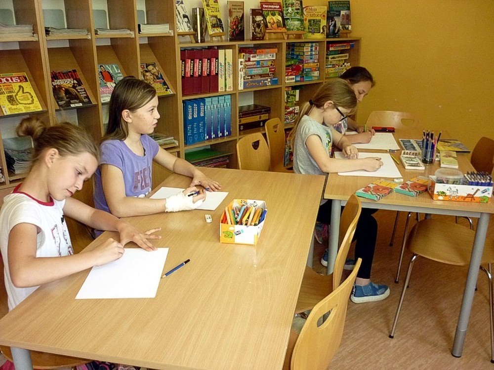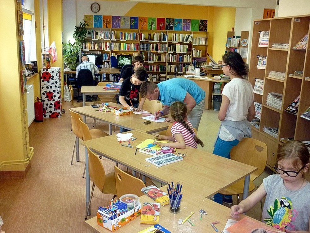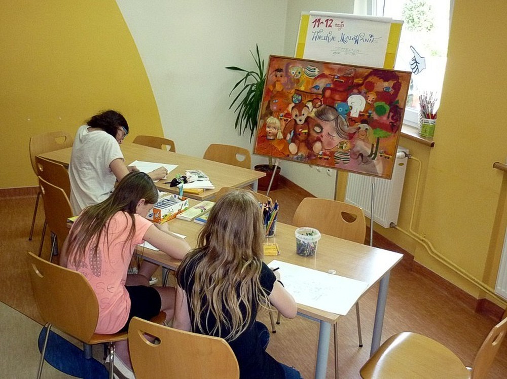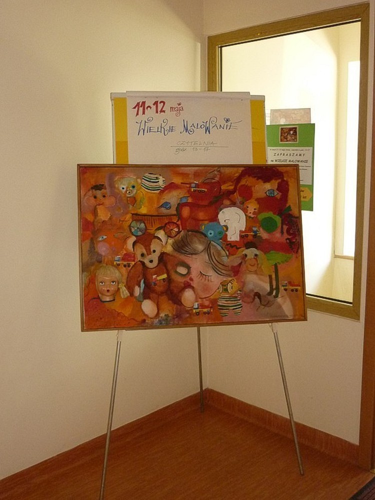 W ramach Tygodnia Bibliotek (8-15 maja), którego tegoroczne hasło brzmi BIBLIOTEKA INSPIRUJE, zaproponowałyśmy naszym młodym czytelnikom zajęcia plastyczne ph. WIELKIE MALOWANIE. Było to w zasadzie WIELKIE KOPIOWANIE, bowiem inspiracją do wykonania prac plastycznych był obraz M. Kozłowskiej-Panek (własność biblioteki).
