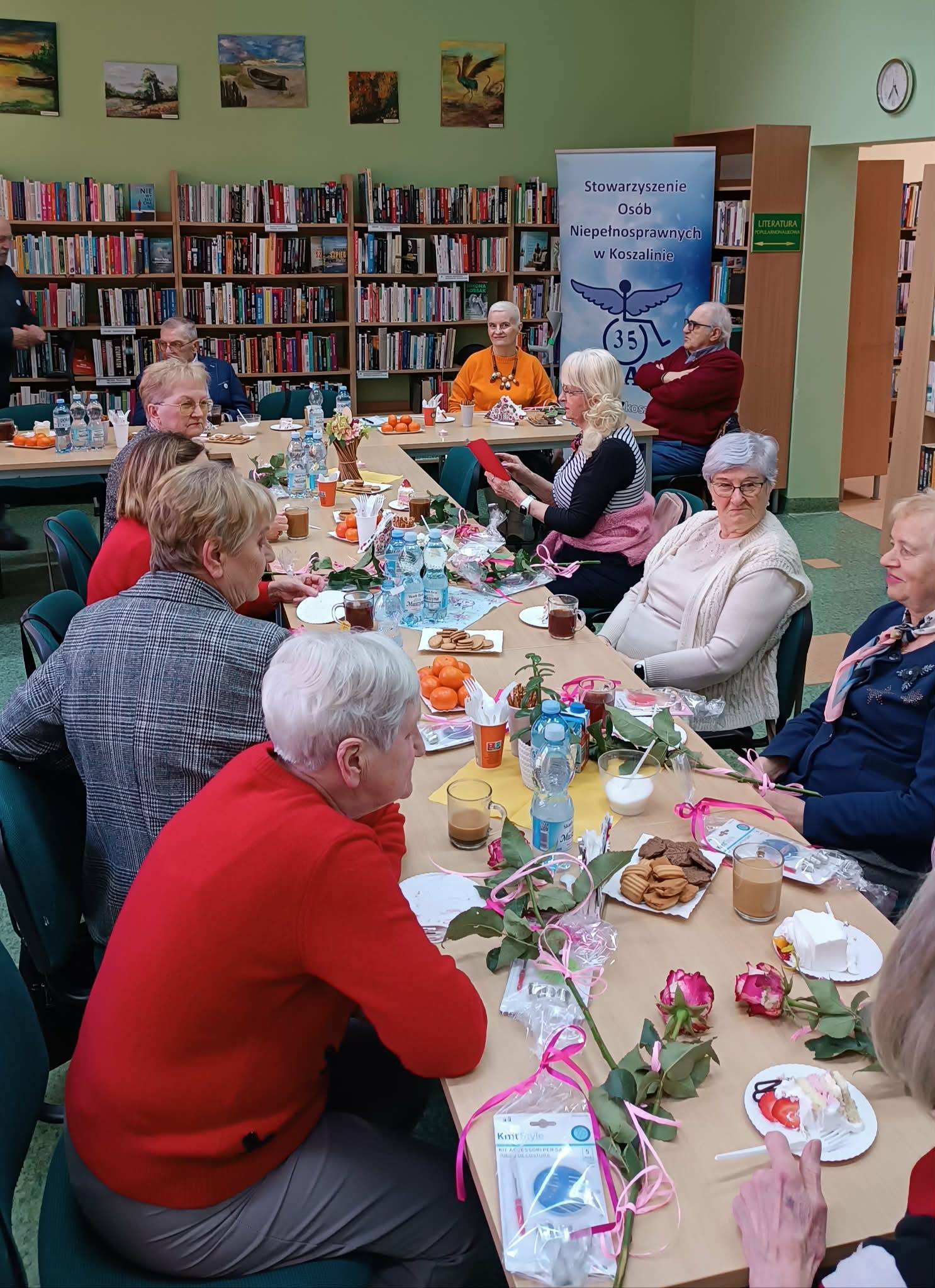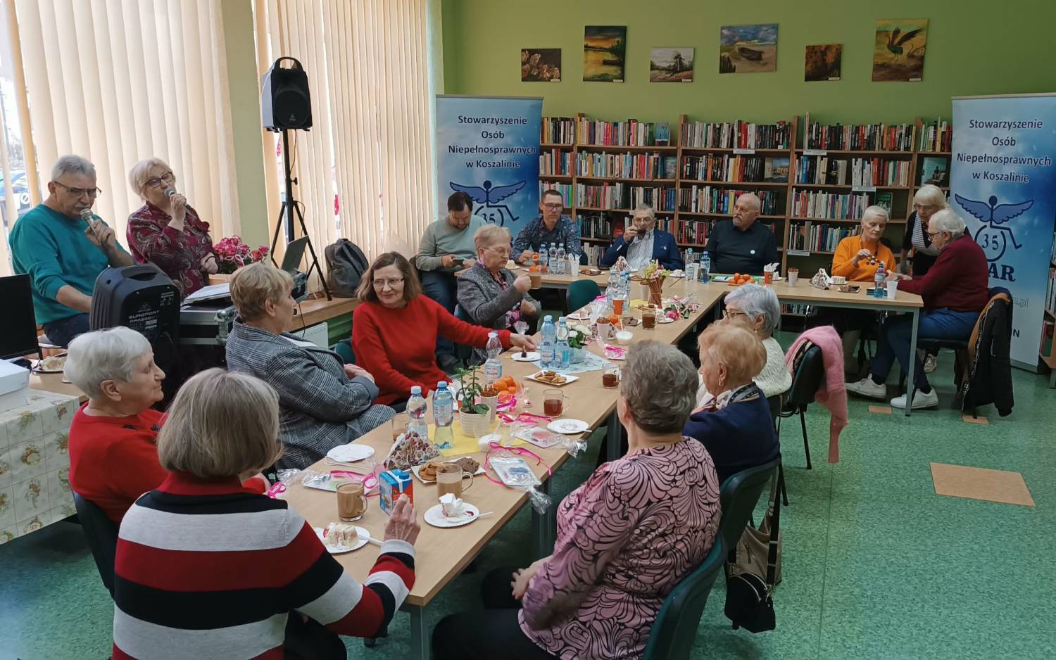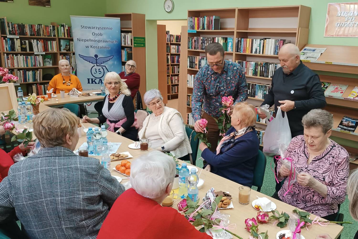 4 marca 2026 stał się w naszej bibliotece piękną okazją do spotkania członków Stowarzyszenia Osób Niepełnosprawnych „Ikar” z okazji Dnia Kobiet. Spotkanie upłynęło w miłej atmosferze. Był czas na rozmowy, wspomnienia oraz wspólne świętowanie. Wszystkim Paniom wręczono kwiaty i drobny upominek oraz złożono serdeczne życzenia, które wywołały wiele wzruszeń i radości. Uroczystość uświetnił występ zespołu muzycznego, który zaprezentował znane i lubiane piosenki. Wspólne śpiewanie i muzyka na żywo sprawiły, że to spotkanie stało się jeszcze bardziej wyjątkowe. Takie chwile pokazują, jak ważne są spotkania, bliskość i możliwość bycia razem.