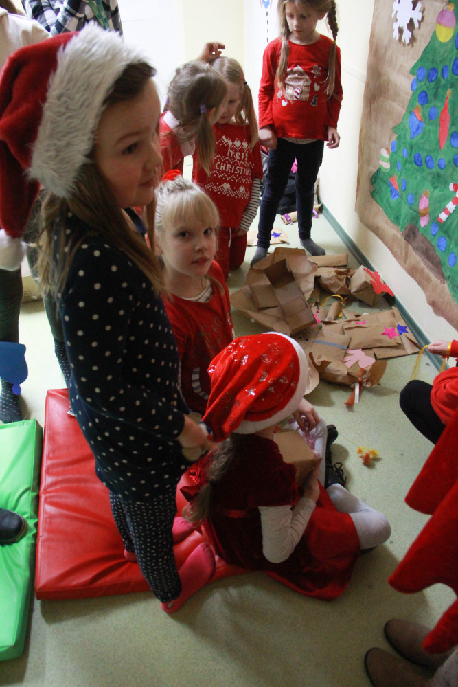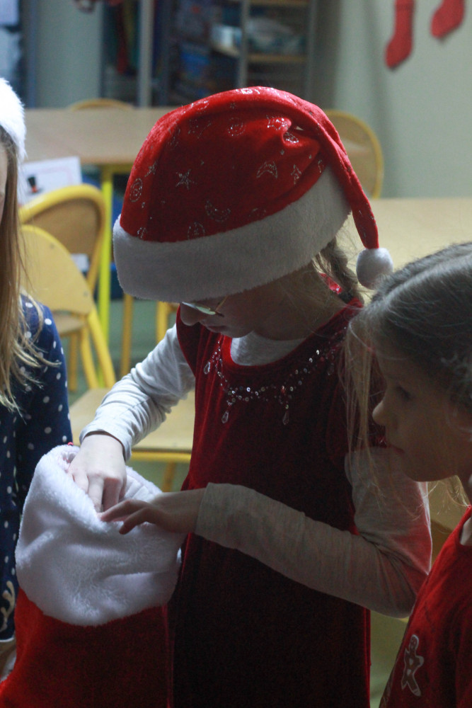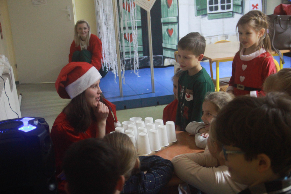 Pierwszym przystankiem na naszej świątecznej mapie było spotkanie z Amelią bohaterką książki „Amelia Bedelia i Boże Narodzenie”, która opowiedziała naszym gościom co nieco o bożonarodzeniowych tradycjach i związanych z nimi przygotowaniach. Następnie elfy zorganizowały zabawy, które wymagały od dzieci uwagi i spostrzegawczości. Nie zabrakło nam czasu na świąteczne przysmaki, które ukryte były pod zaczarowanymi kubeczkami. Oczywiście były również prezenty, z zagadką i słodką niespodzianką.
