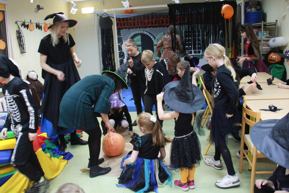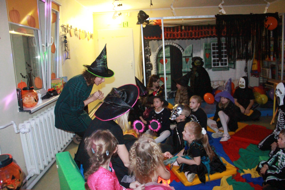 Czarownica Brygida zaserwowała ,,Kubki smakowe”, pod którymi kryły się kawałki jabłka nadgryzionego przez Królewnę Śnieżkę, pieczeń z pająka i inne smakołyki. Wiedźma Katarzyna ukryła cukierkowe psikusy w balonach, a Hogata przygotowała dyniowe latarenki i opowiadanie z dreszczykiem. Zabawa była znakomita!