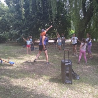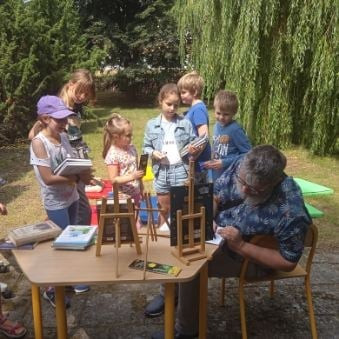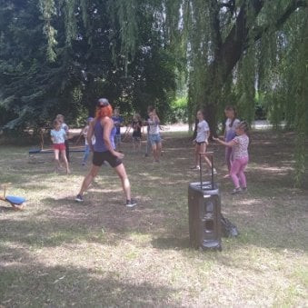 Spotkanie z Pawłem Wakułą autorem książek dla dzieci, multimedialna i interaktywna prezentacja dla dzieci ze strony https://szpiedzywiedzy.pl/ oraz zumba w ogrodzie. Uff.