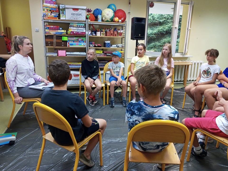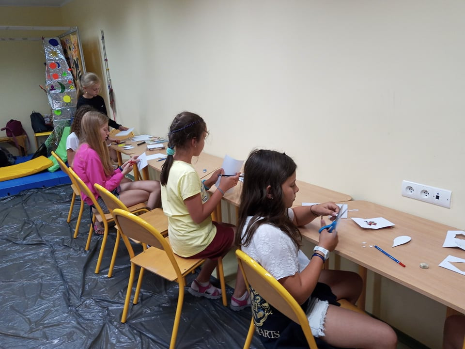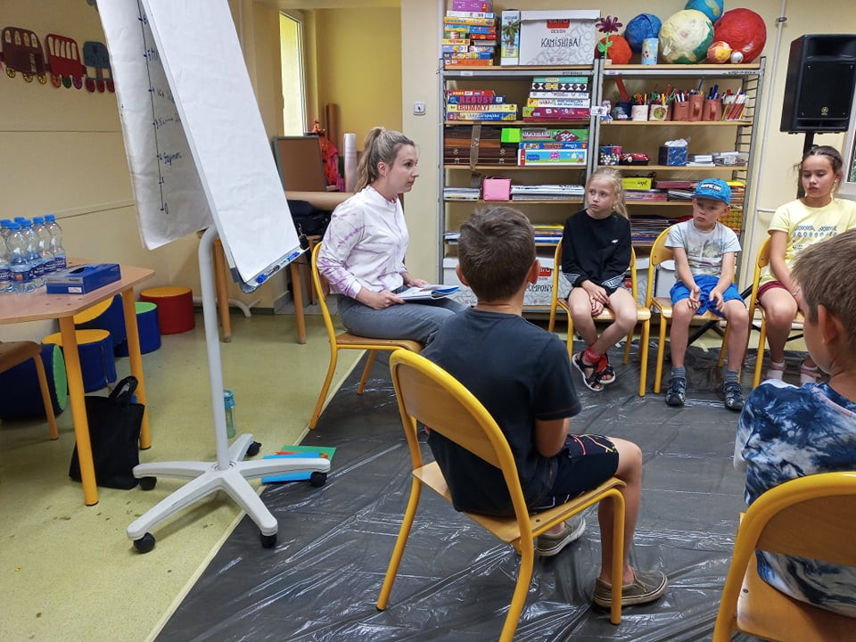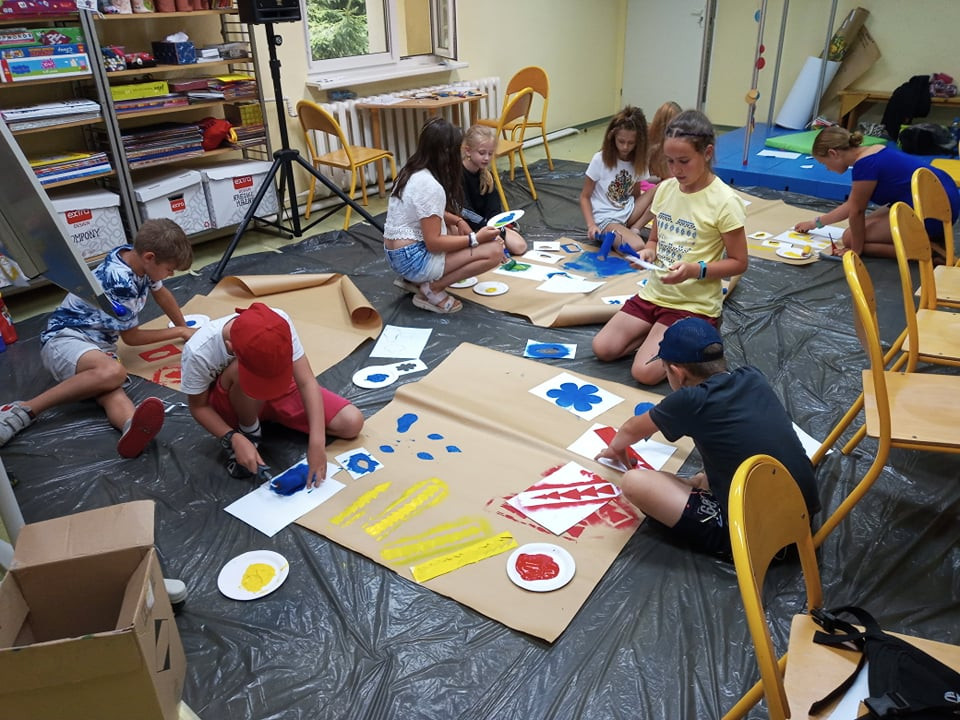 Kolejny dzień naszych wakacyjnych zajęć za nami. Dzisiaj dzieci brały udział w zajęciach plastycznych, których motywem przewodnim były kompozycja, kształty, kolory, wyobraźnia.