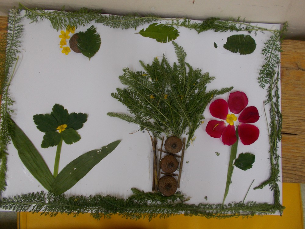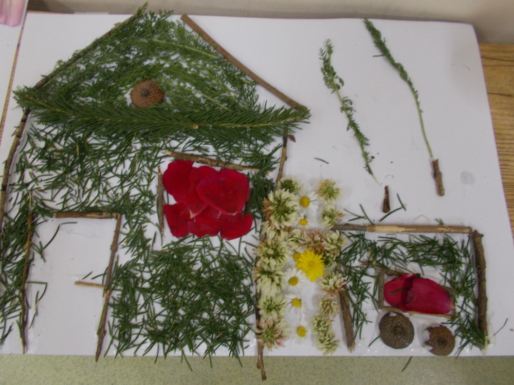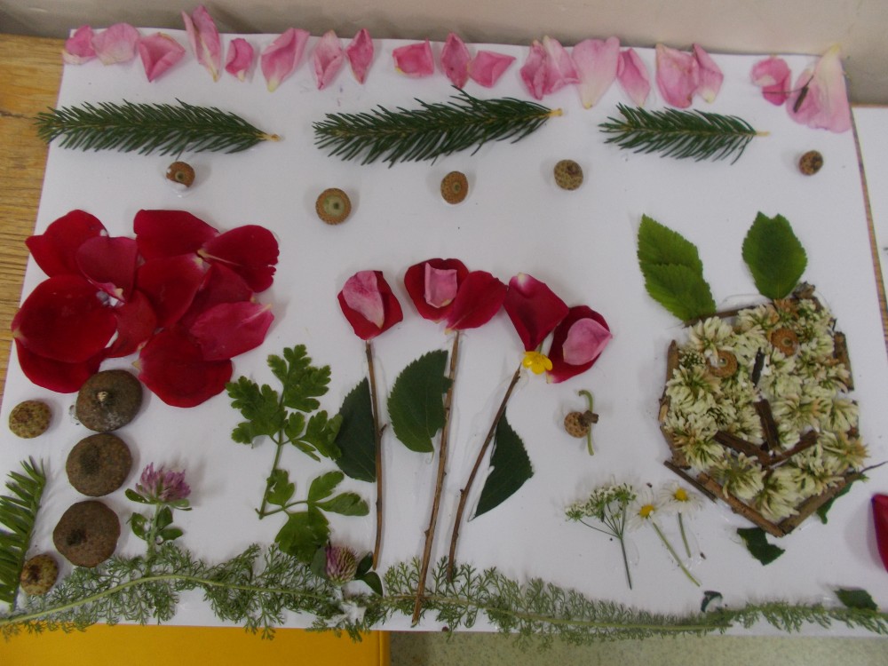 Przygotowujemy się do zajęć plastycznych. Z każdej strony napływają ciekawe okazy, liście, płatki kwiatów, trawa, szyszki i wszyscy mają pomysły jak wykorzystać je w swoich pracach.