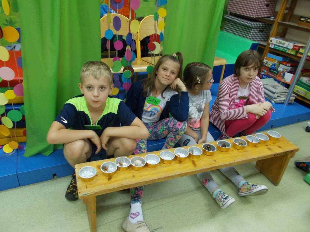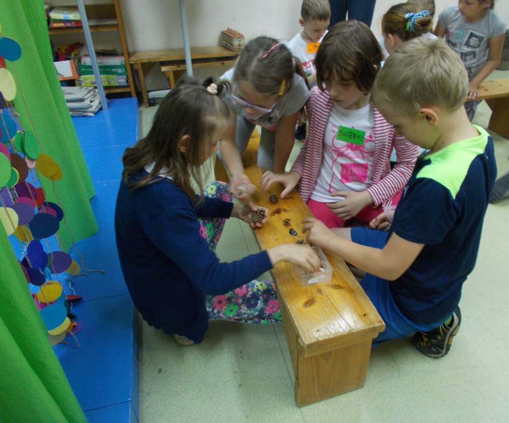Pani Grażyna barwnie opowiadała o otaczającym nas świecie, poznaliśmy roślinność, krzewy, drzewa rosnące w naszym ogrodzie. Czuliśmy się jak odkrywcy, poszukiwacze i świetnie się przy tym bawiliśmy. Uściskom i podziękowaniom nie było końca.