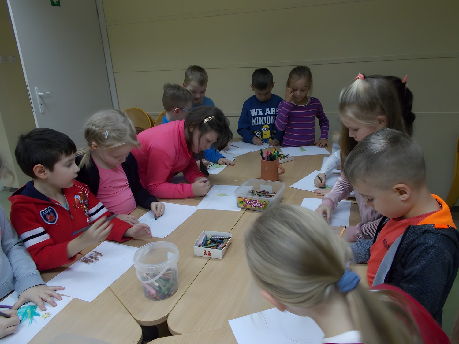 Grupa przedszkolaków pod świąteczną dekoracją