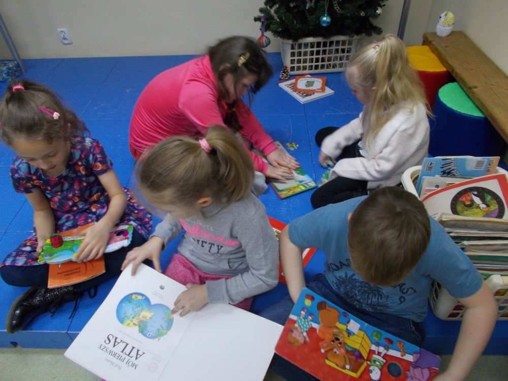 Wspólne opowieści o udekorowaniu świątecznego drzewka, jak Mikołaj dostarcza prezenty i kto piecze smaczne pierniki. Stałym elementem lekcji bibliotecznej jest czytanie dzieciom wybranej książki.