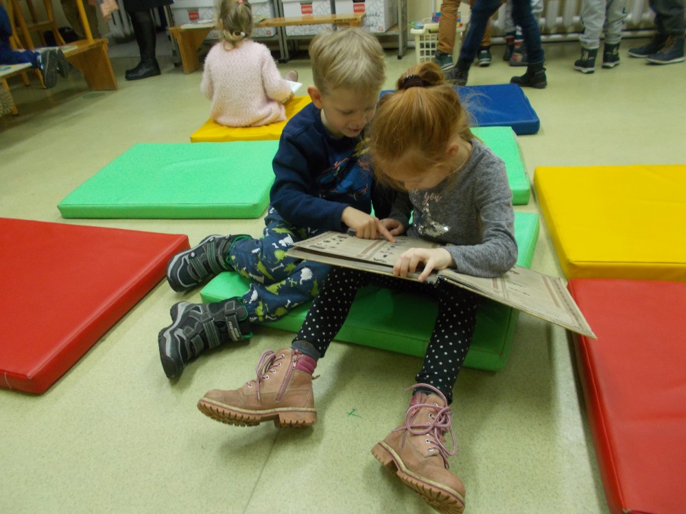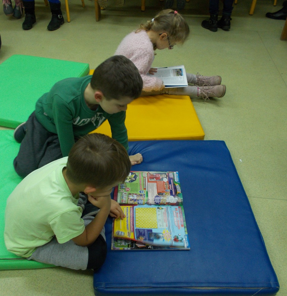 Rozczytana grupa przedszkolaków nie mogła się doczekać, kiedy będą mogli sami przebierać w książkach. Nie wystarczyły im umieszczone bajki, opowiadania w koszach, wypatrzyli inne na półkach.