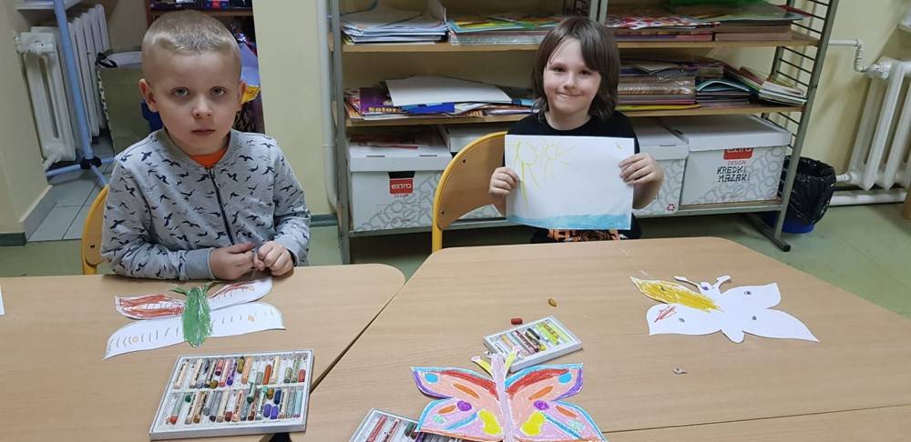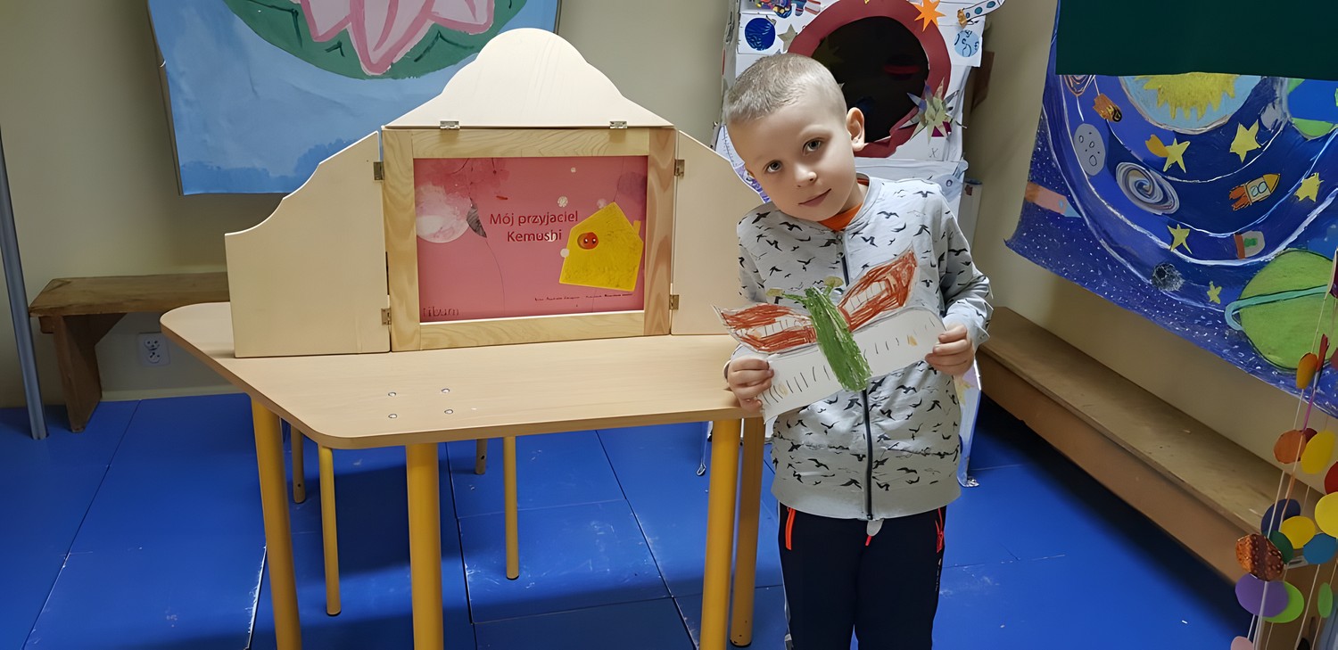Podczas Czytania dla Malucha ponownie zaprosiliśmy dzieci do teatru. Dzisiejszy spektakl "Mój przyjaciel Kemushi" (tekst Nathalie Dargent), wystawiony z wykorzystaniem teatrzyku kamishibai, został odegrany również przez uczestników spotkania. Dzieci dowiedziały się skąd się biorą motyle i stworzyły swoje.