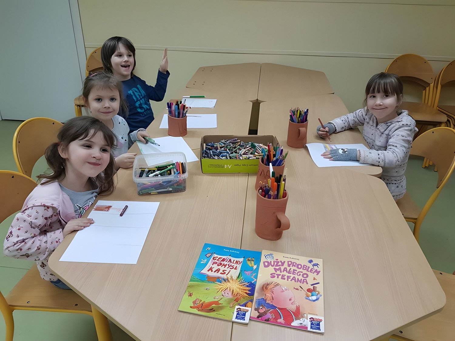 Podczas Czytania dla Malucha, dzieci poznały dwie książki: " Genialny Pomysł Kasi" i "Duży problem małego Stefana" oraz wykonały pracę plastyczną.