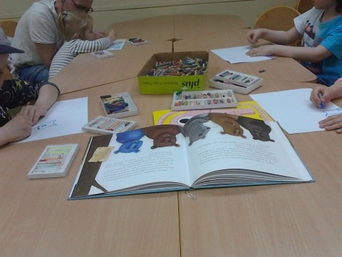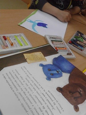 Środowe "Czytanie dla Malucha" spędziliśmy w towarzystwie słonika Pomelo z książki "Pomelo rośnie" oraz misiów z bajki "Niebieska Niedźwiedzica". Dzieci wykonały również prace plastyczne.
