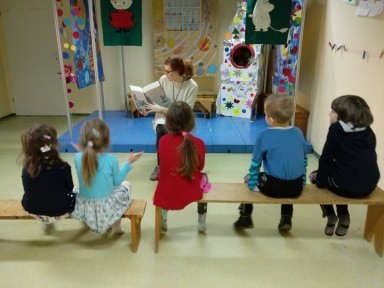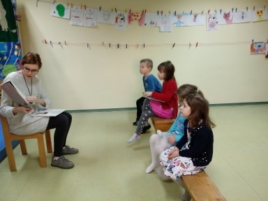 Podczas środowego Czytania dla Malucha dzieci poznały książki "A królik słuchał" (Cori Doerrfeld), "O! Kapelusz" (Jon Klassen) oraz "Gdzie jest moja czapeczka?" (Jon Klassen).