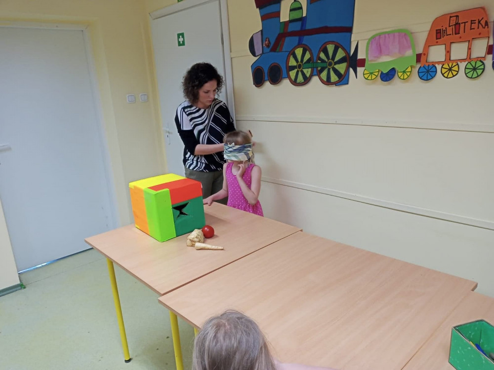 Największą atrakcją naszego spotkania była możliwość dotknięcia i powąchania świeżych owoców i warzyw – dzieci bezbłędnie je wszystkie rozpoznały.