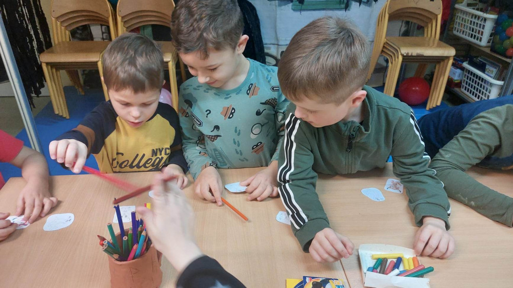 ,,Pobaw się ze mną” Nicoli Kinnear to kolejna świetna pozycja z wydawnictwa Amberek, którą pokochały odwiedzające nas przedszkolaki. Piękna książka o przezwyciężaniu oporów przed kontaktem i zawieraniu przyjaźni skłoniła dzieci do opowiedzenia o bliskich im osobach, z którymi spędzają miło czas. Po wysłuchaniu opowiadania, dzieci podjęły próbę scharakteryzowania cech dobrego przyjaciela oraz wykonały kukiełki głównych bohaterów przeczytanej książki. Po wspólnych zabawach, maluchy wybrały interesujące ich książki oraz gry planszowe z naszych półek, przy których świetnie się bawiły.