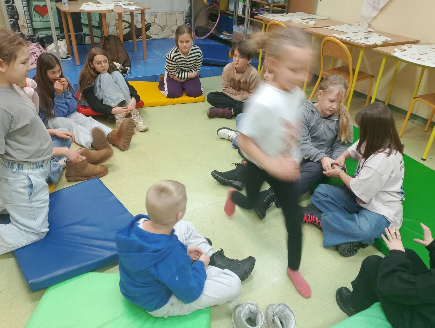 Nie zabrakło też ruchu i śmiechu Wspólnie zagraliśmy w nasze ulubione zabawy, m.in. mafię i bombę, które jak zawsze wywołały mnóstwo emocji i szerokie uśmiechy.