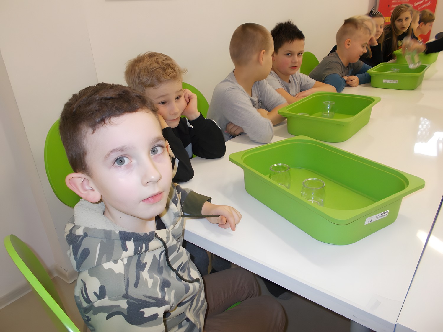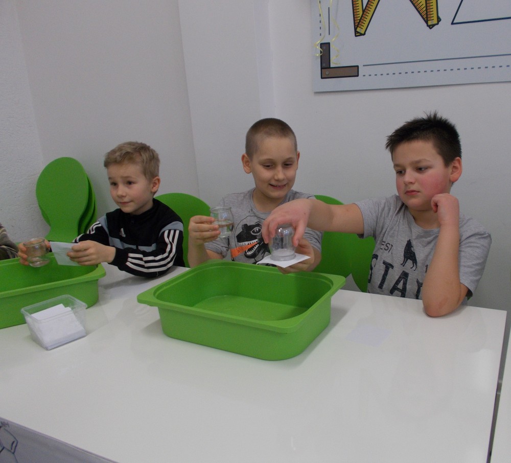 Pierwszą atrakcją była wycieczka do Yellow Park, gdzie mali uczestnicy mieli okazję wykonać doświadczenia związane z wodą oraz spędzić aktywnie czas na zjeżdżalniach. Po powrocie rozpoczęłyśmy zajęcia tematyczne. W tym roku motywem przewodnim jest kosmos. Dzieci dowiedziały się mnóstwa ciekawostek związanych z wszechświatem, a następnie wzięły udział w zabawach integracyjnych.
