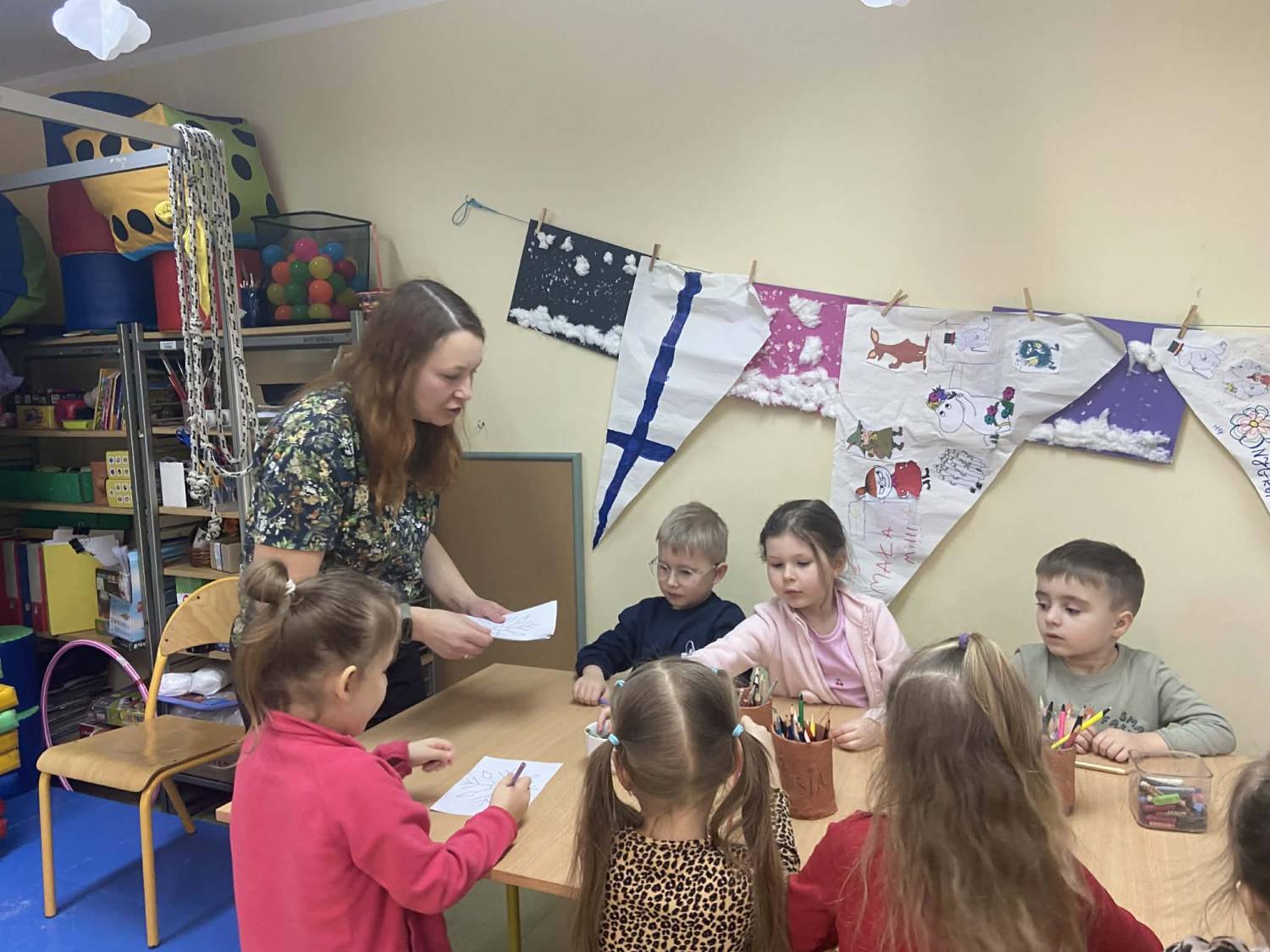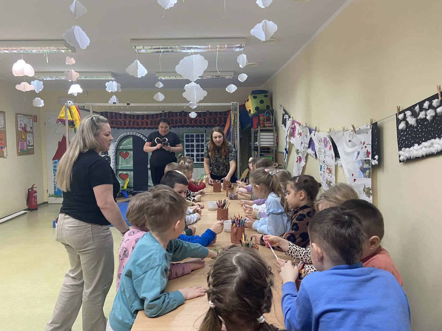 Nie zabrakło również aktywności ruchowych – dzieci świetnie bawiły się podczas rzutów do celu – oraz pracy plastycznej, w której mogły wykazać się kreatywnością i zaangażowaniem.