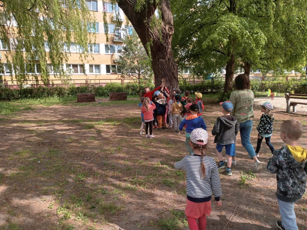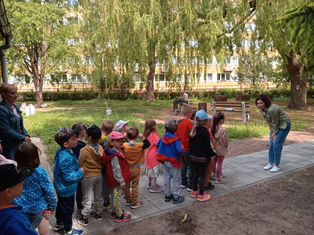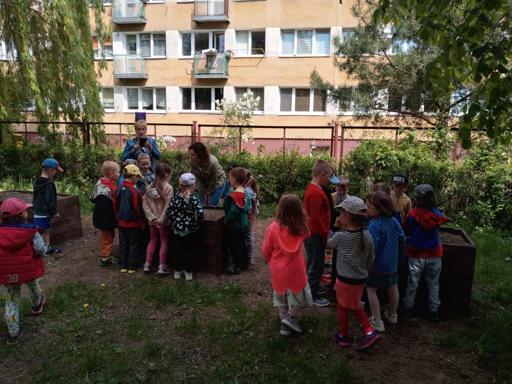 Dzieci zwiedziły nasz ogród, odkryły piękne domki dla owadów. Dużą atrakcją okazały się donice, które czekają na nasionka.