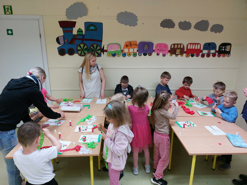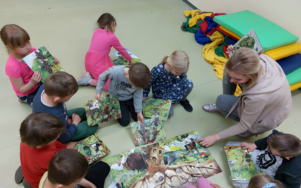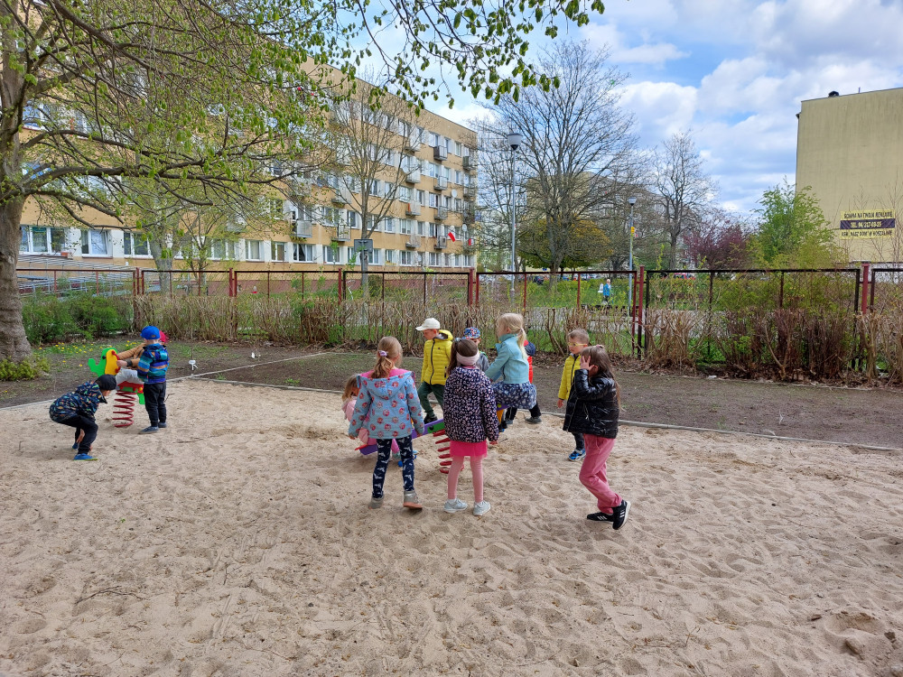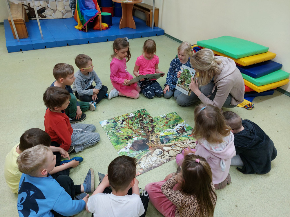Środowy poranek rozpoczęłyśmy od wizyty rezolutnych ,,Motylków” z Przedszkola nr 20 w Koszalinie. Pierwsze kroki maluchy skierowały do naszego ogrodu, gdzie mogły pooglądać posadzone rośliny, nakarmić płatkami owsianymi ptaki oraz zaobserwować małe, pożyteczne owady, m.in. kowale, które licznie zamieszkują nasz ogródek. Po zabawach na świeżym powietrzu, przeczytaliśmy opowiadanie o Franklinie oraz ułożyliśmy wspólnie duże drzewo. Pomiędzy zabawami, dzieci zerkały na zewnątrz, obserwując ptaki, które przyleciały zwabione płatkami. Dzieci zapamiętały, że nie wolno karmić naszych pierzystych przyjaciół chlebem, który im bardzo szkodzi.