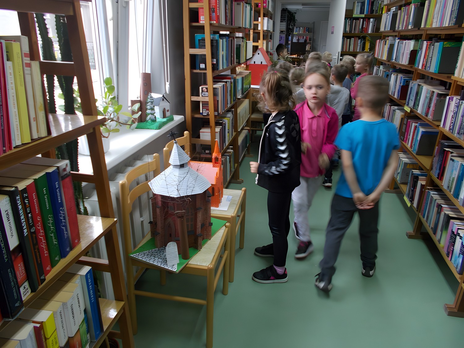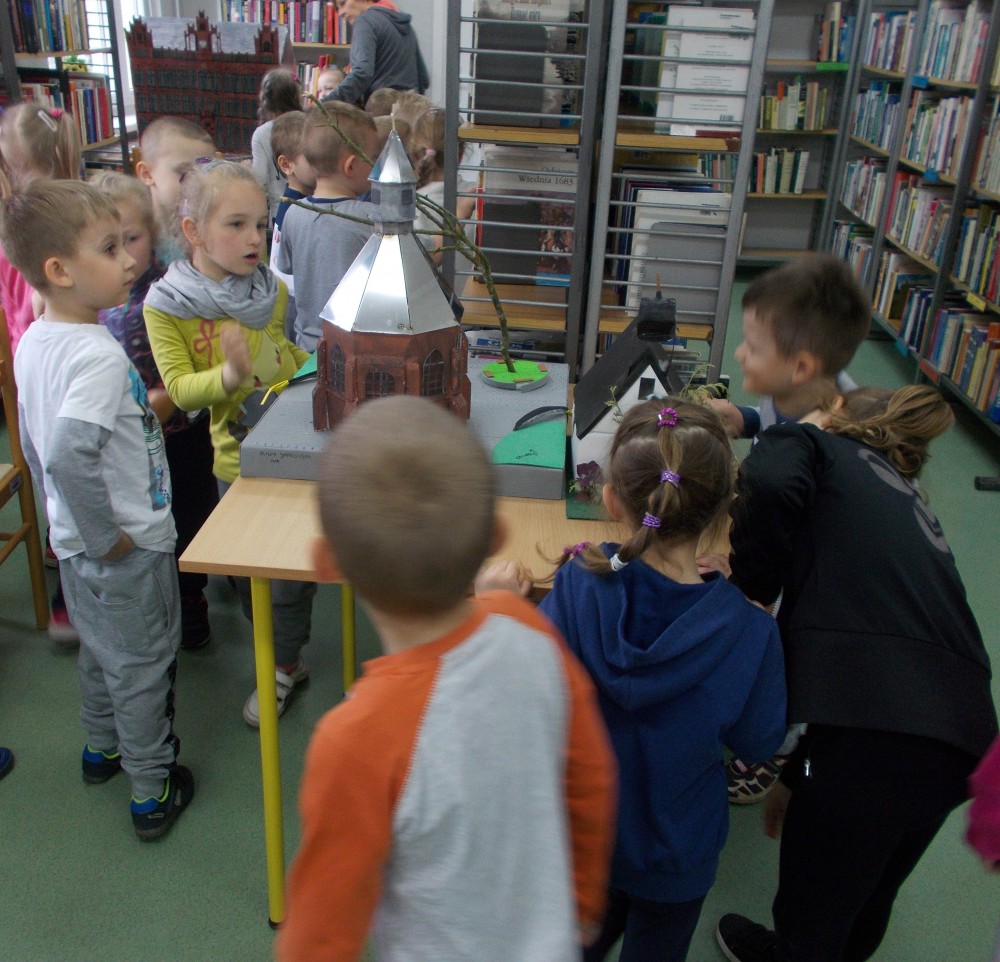 Makieta Katedry w otoczeniu starych murów i ciekawość młodych czytelników