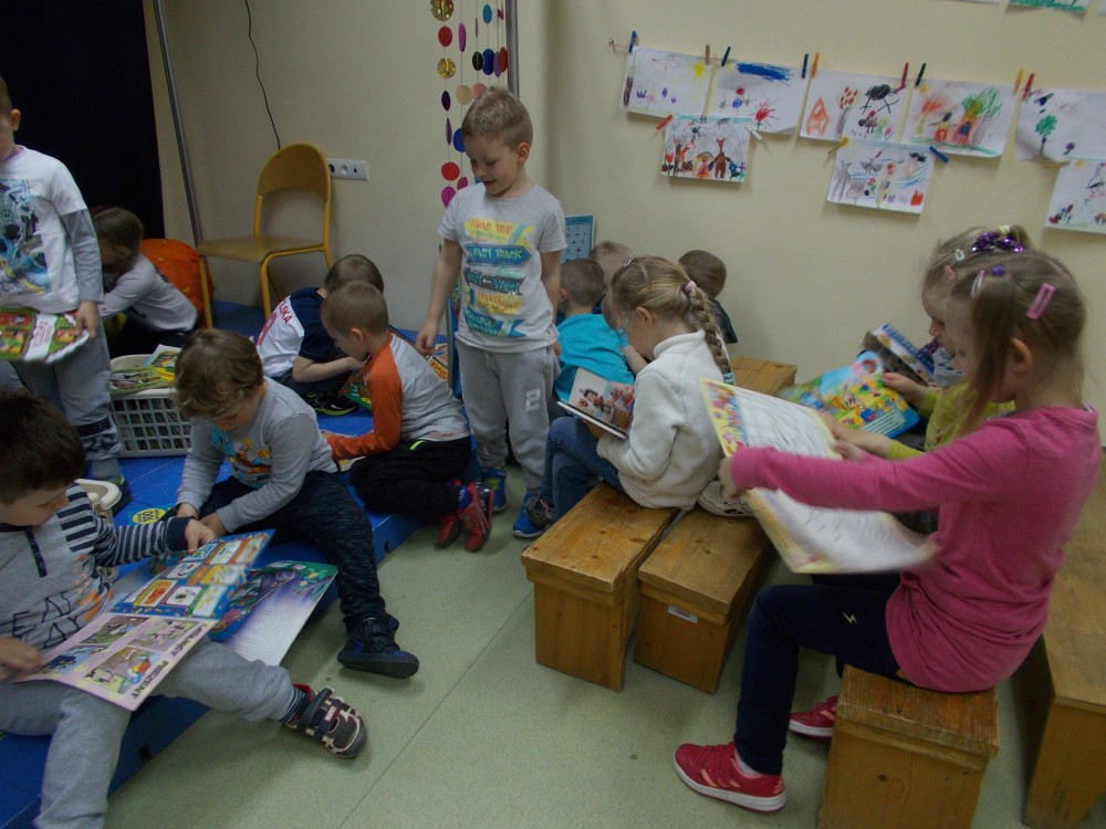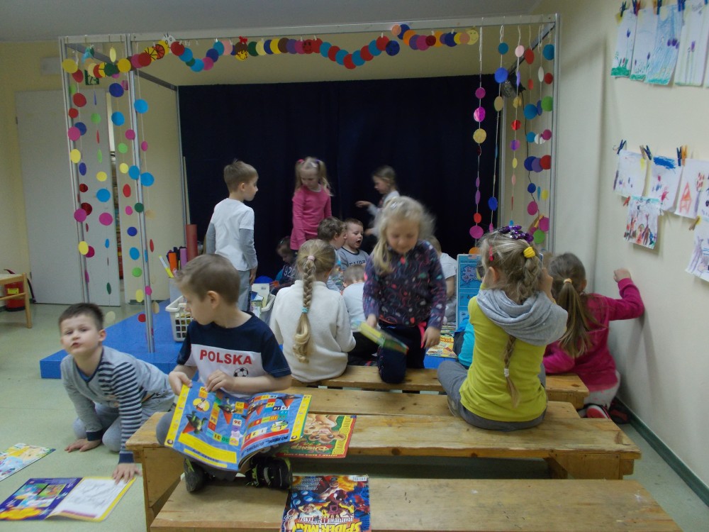 Dzieci wybierają sobie miejsce, gdzie mogą oglądać wybrane gazety i książki.