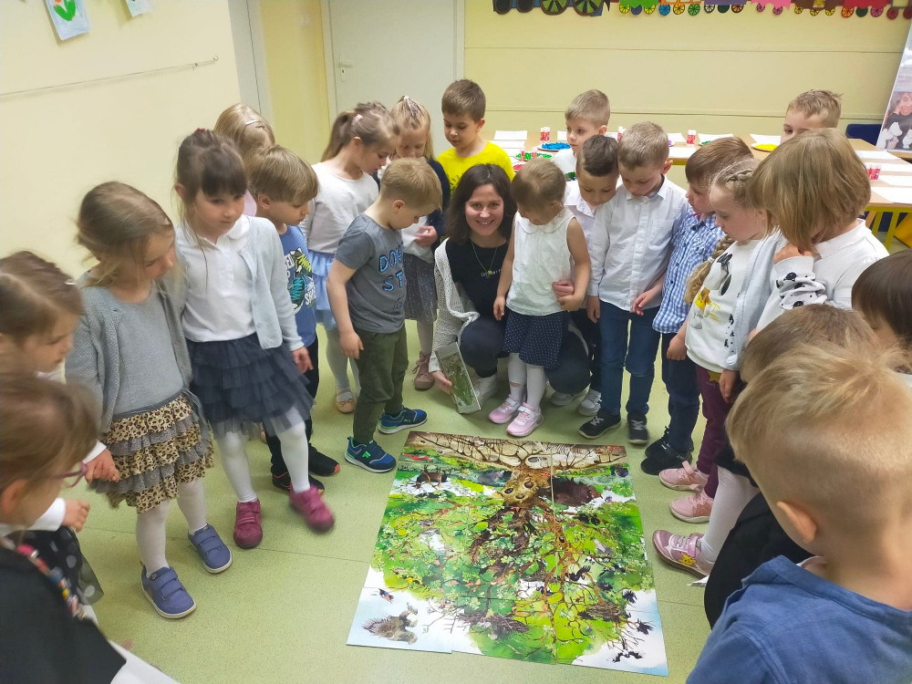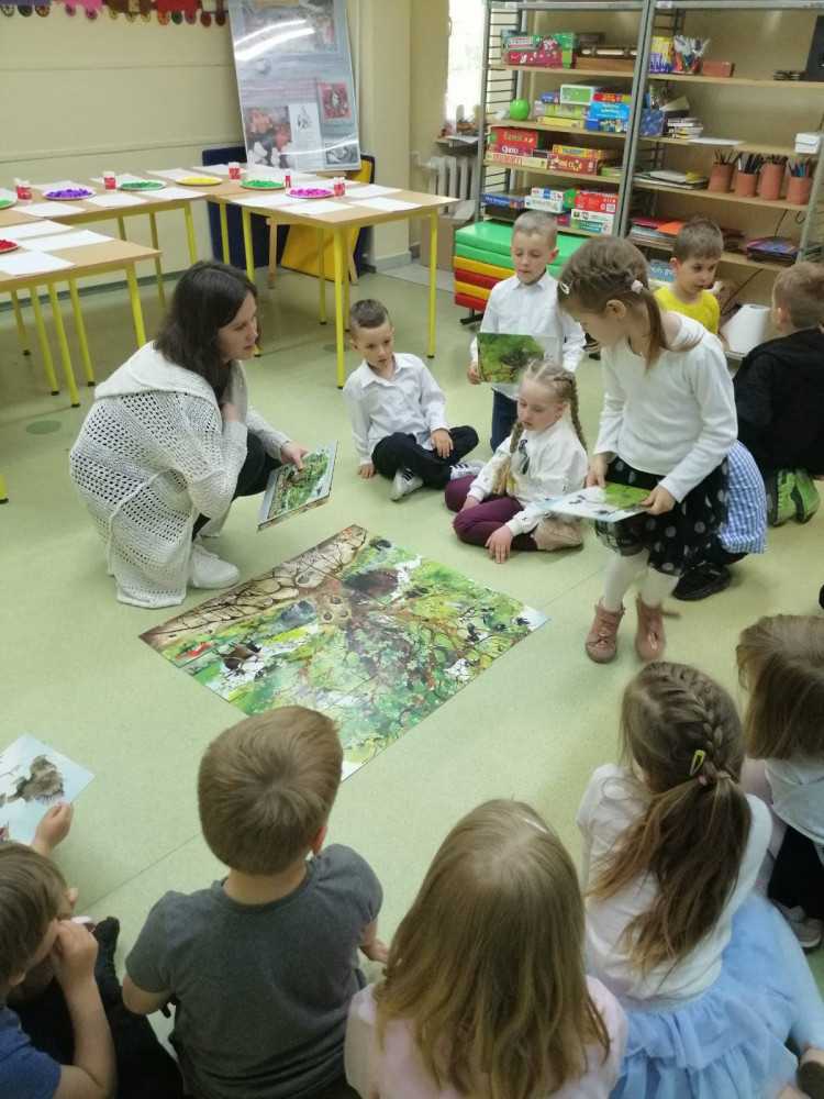 Dzisiejszego popołudnia gościliśmy dzieci z Przedszkola nr 3 w Koszalinie, które po raz pierwszy miały okazję zobaczyć nasz biblioteczny ogród. Jak się okazało, bezpośredni kontakt z przyrodą stanowił doskonałą okazję do rozmowy na temat: jak dbać o parki, ogrody i lasy. Razem z małymi ogrodnikami wysłuchaliśmy opowiadania Hectora Dexet „Oto jest ogród”, którego bohaterami są mieszkańcy ogrodów i innych zielonych miejsc. Opowieść ta stanowiła doskonały punkt wyjścia do żywej dyskusji o cechach dobrego ogrodnika, jego atrybutach, a także o tym jak pielęgnować swoje roślinki. Na zakończenie zajęć przedszkolaki razem ułożyły puzzle, których motywem przewodnim było drzewo i jego mieszkańcy.