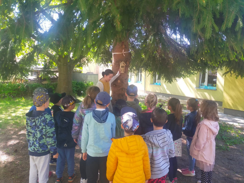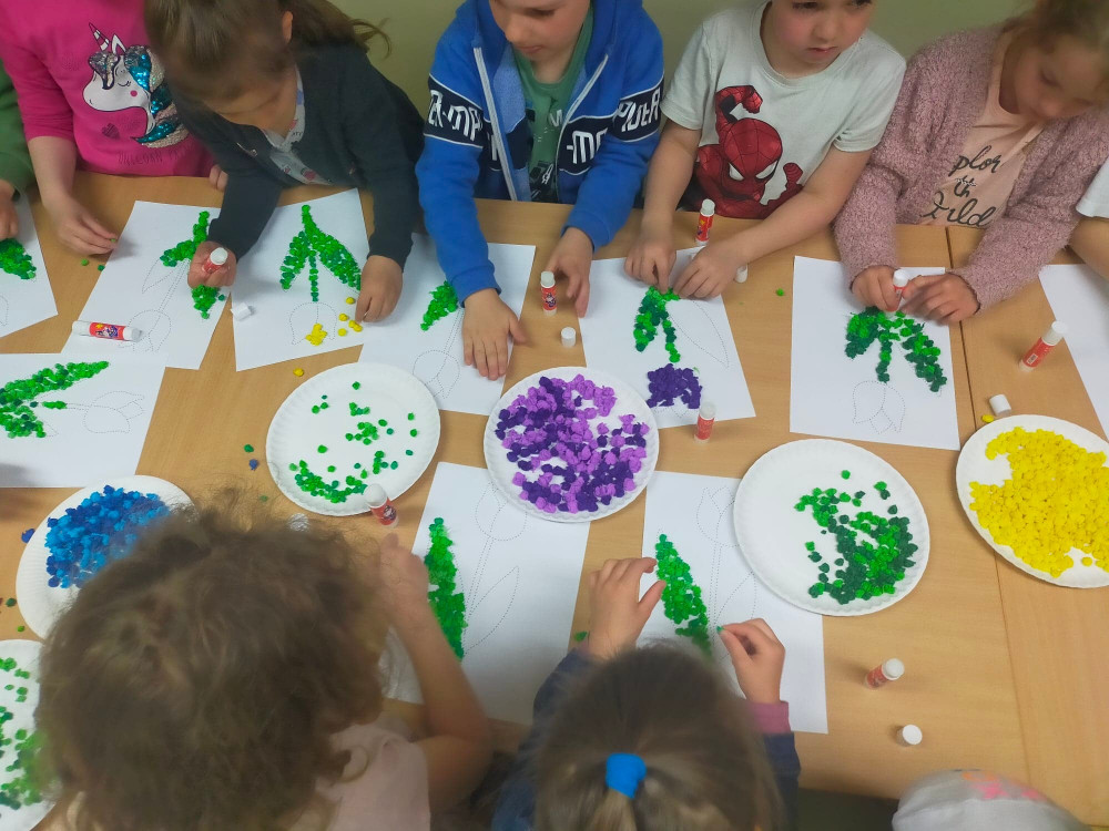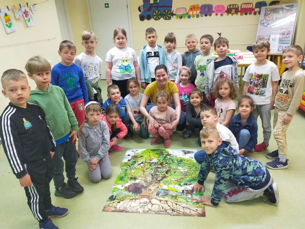 Ogród jest miejscem, w którym każdy z nas chętnie spędza czas. Możemy w nim odpocząć, a także zażyć odrobiny ruchu na świeżym powietrzu. Dzisiaj z tej okazji skorzystała grupa „Ekoludków” z Przedszkola nr 7 w Koszalinie, która spędziła chwilę w naszym bibliotecznym ogrodzie. Potem, razem z Hectorem Dexetem, autorem książki „Oto jest ogród”, odbyliśmy spacer po magicznym ogrodzie, który z jednej strony wydaję się być przyjaznym i miłym, lecz z drugiej strony może kryć wiele tajemnic. Z przedszkolakami rozmawialiśmy również o mieszkańcach ogrodowych zakątków oraz o roślinach jakie możemy w nich zobaczyć. Chwilkę też poświeciliśmy ogrodnikom, ich pracy oraz ich atrybutom. Wspólnie ułożyliśmy duże puzzle, przedstawiające drzewo i jego mieszkańców. Zwieńczeniem naszych zajęć była praca plastyczna, czyli tulipan, wykonany z bibuły.