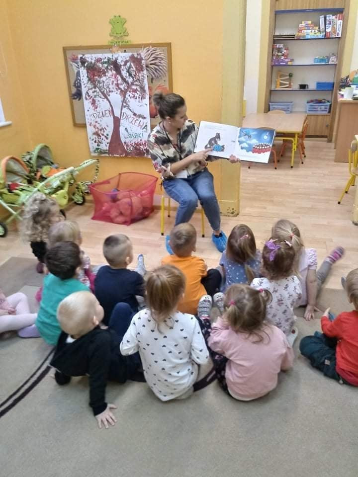 Dziś nasza bibliotekarka odwiedziła Przedszkole nr 7. Z Kotkami - rozmawialiśmy o symbolach narodowych. Dzieci wysłuchały opowiadania "Orzeł -królewski ptak z polskiego godła". Natomiast Żabki, najmłodsza grupa przedszkolna, poznały "Historię małej popielicy, która nie chciała się obudzić".