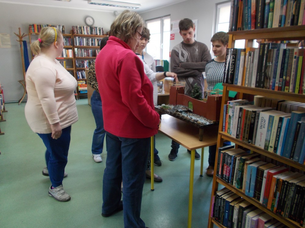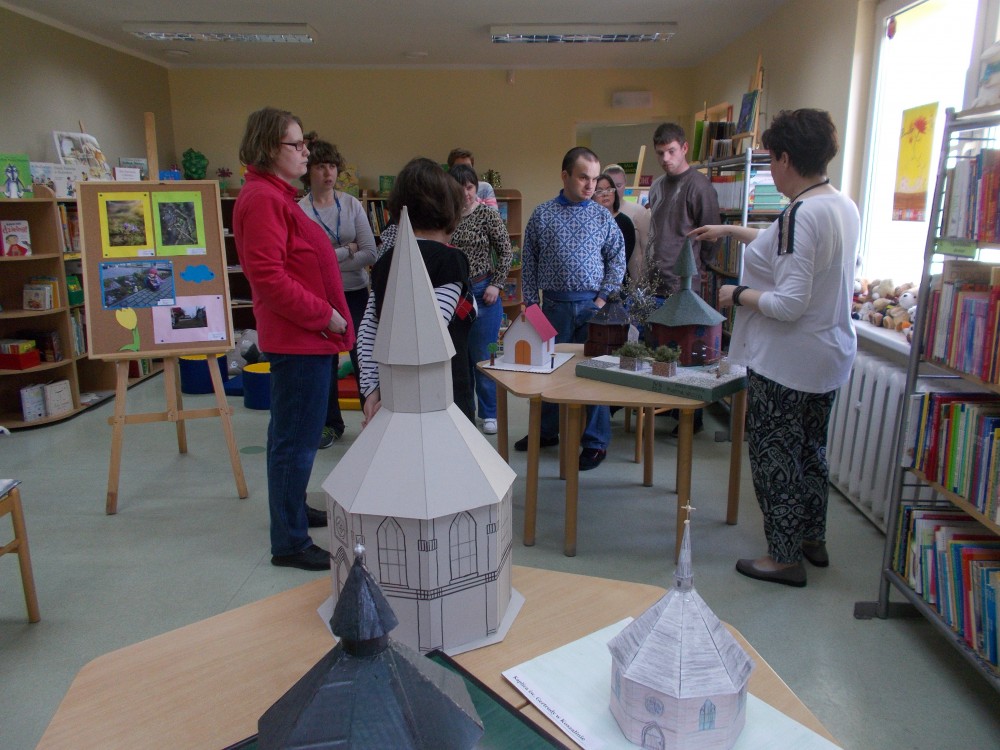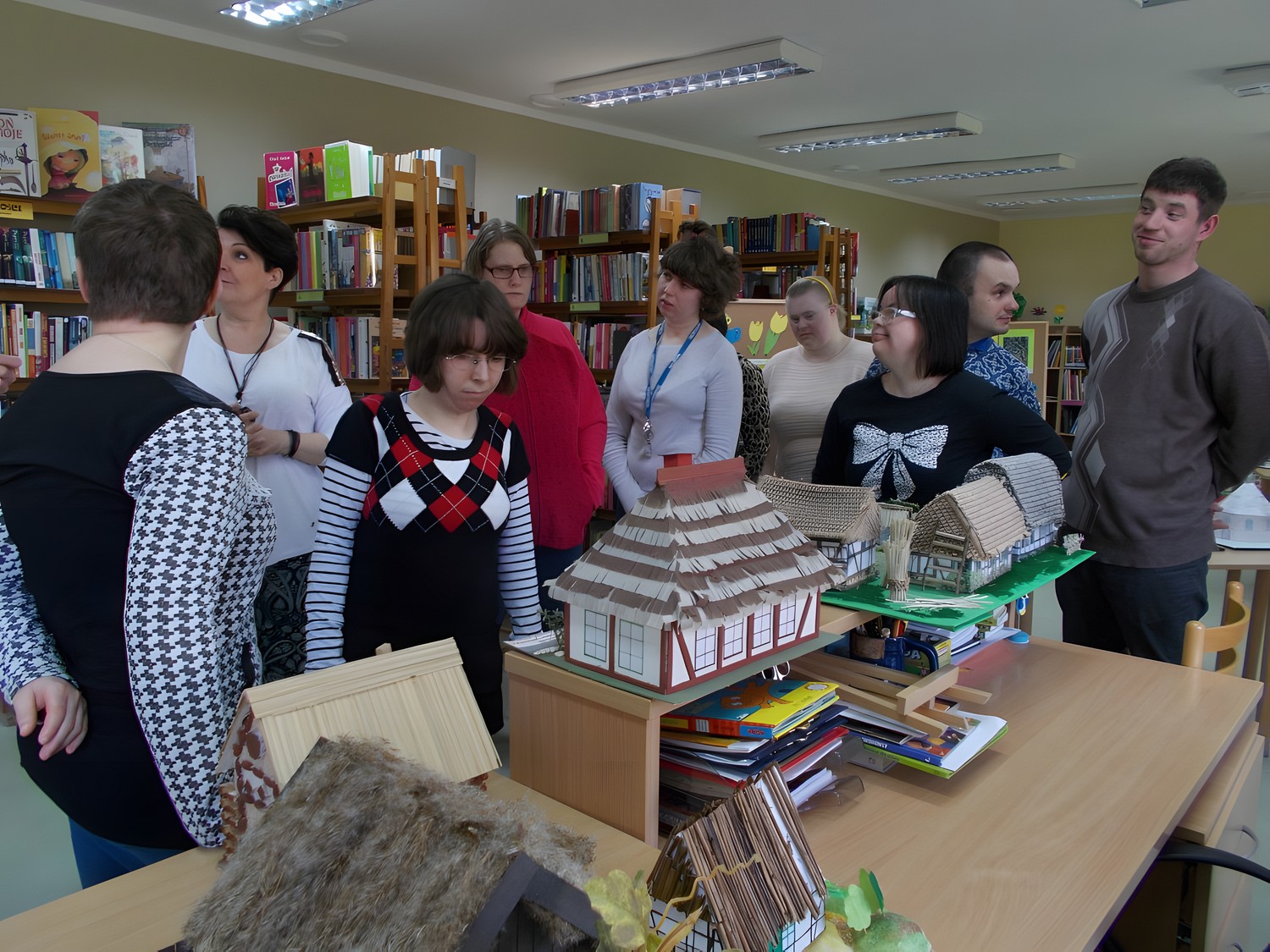 Podopieczni Warsztatów Terapii Zajęciowej nr 2 w Koszalinie, oglądają wystawę "Zabytki Koszalina". Makiety wykonali uczniowie Szkoły Podstawowej nr 10 w Koszalinie. Zwiedzający rozpoznawali znane koszalińskie zabytki i opowiadali gdzie można je zobaczyć w mieście.
