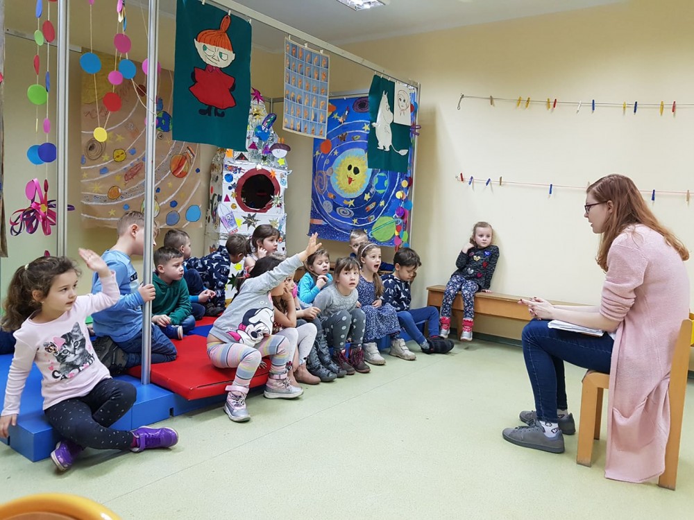 Przedszkolaki poznały dziś książkę "Jestem najpiękniejszy" Mario Ramosa. Zobaczyły, że bycie próżnym jest złe. A postaci spotkane i obrażone przez Wilka, czują się smutne. Dzięki czarom zmieniły się w wilki i mogły przeprosić za brzydkie zachowanie każdego z bohaterów książeczki. Po wykonanym zadaniu, przy pomocy czarów wróciły do ludzkiej postaci, by móc wykonać rysunki, a później wyruszyć do przedszkola.