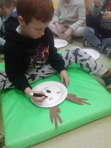 Dziś dzieci z przedszkola nr 20 wysłuchały książki "Gwiazdka Kubusia Puchatka", a także stworzyły portrety reniferów Świętego Mikołaja. Bawiły się również w lodowe jaskinie.