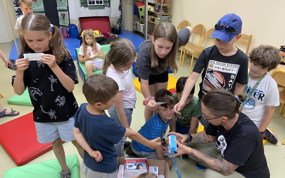 Dzieci przy pomocy samo-drukujących aparatów Agfa, przeobraziły się w prawdziwych fotoreporterów i wraz z naszym gościem tworzyli cudowne zdjęcia.