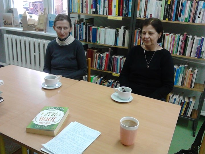 Zero waste w bibliotece, czyli rozmowy o ekologii. Podczas zajęć dyskutowałyśmy o wysypiskach śmieci oraz prostych sposobach na ekologiczne życie.